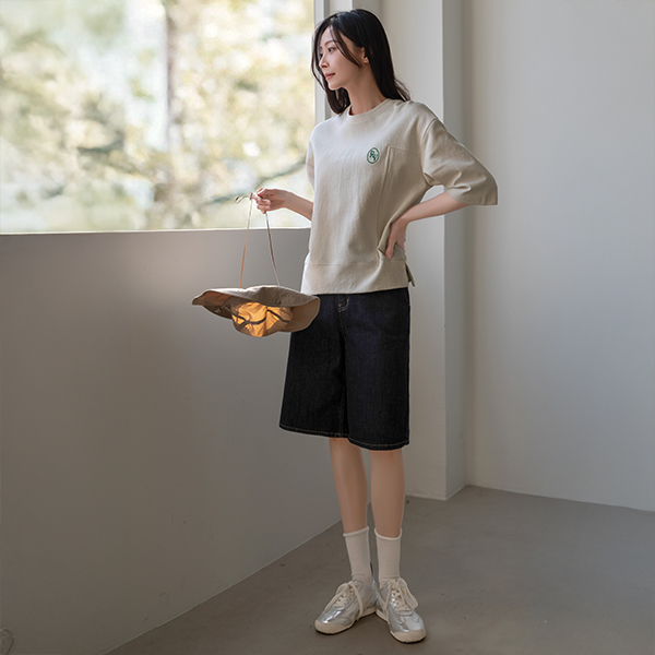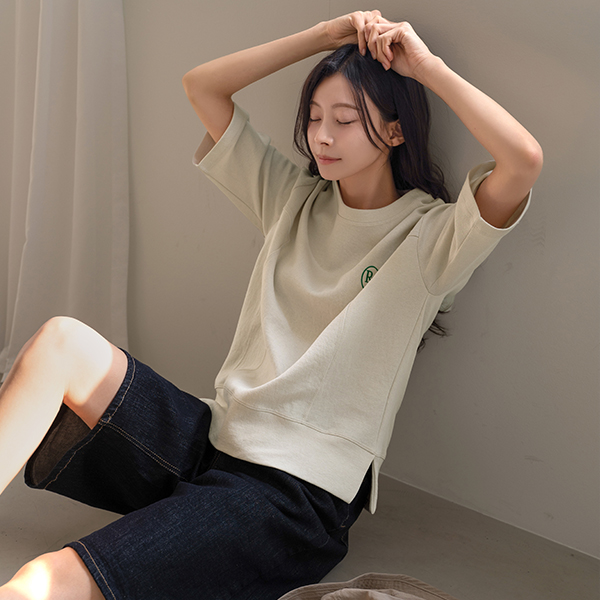 EMBROIDERY SLIT CAPRI T-SHIRT