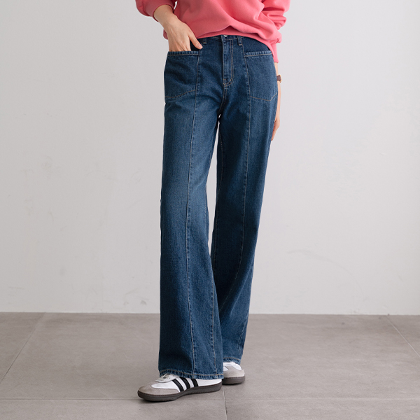 BELLA FRONT SLIT POCKET WIDE DENIM PANTS