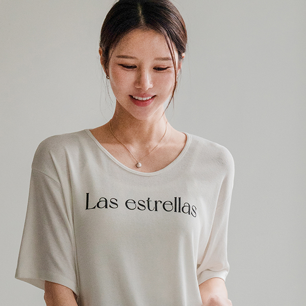 LAS LETTERING U-NECK SHORT-SLEEVED T-SHIRT