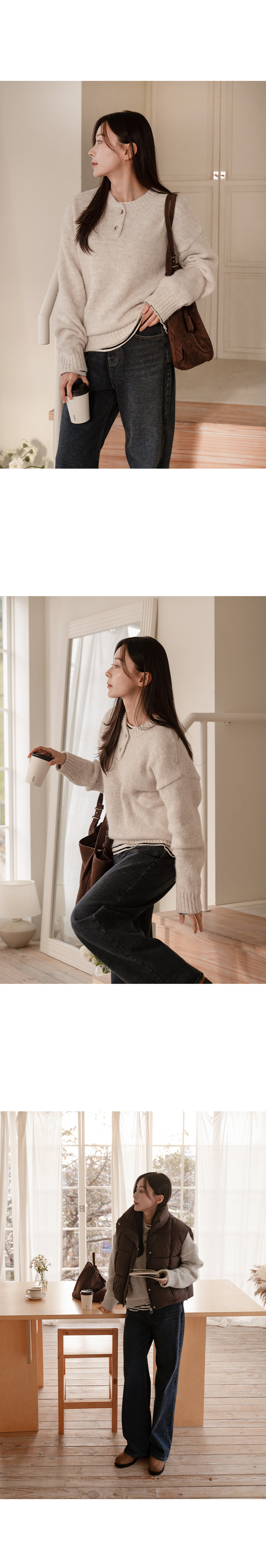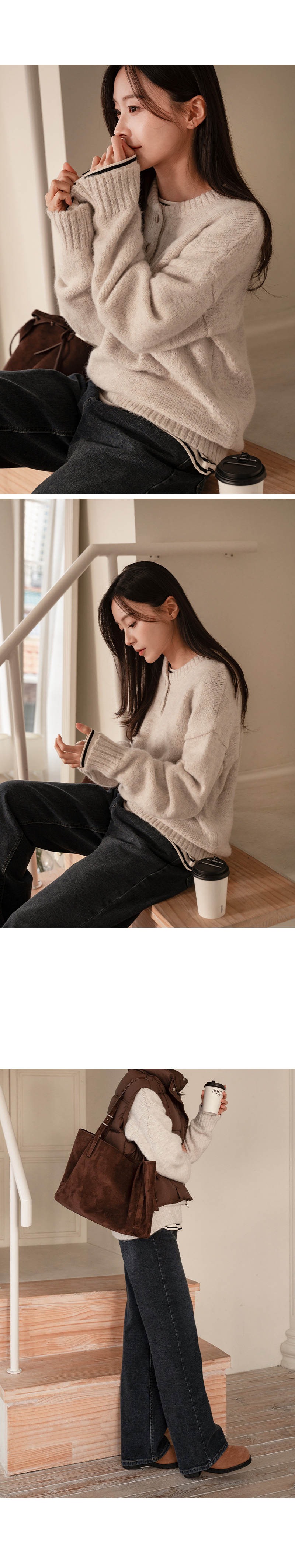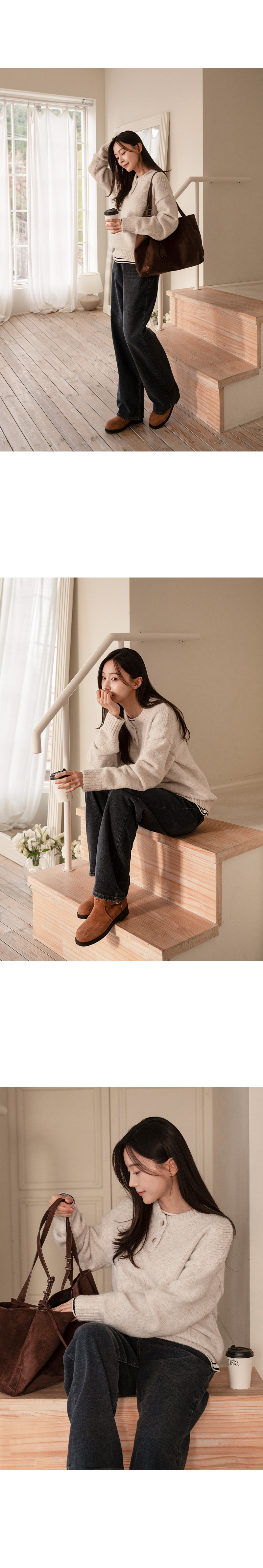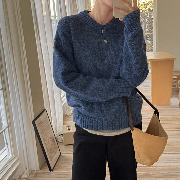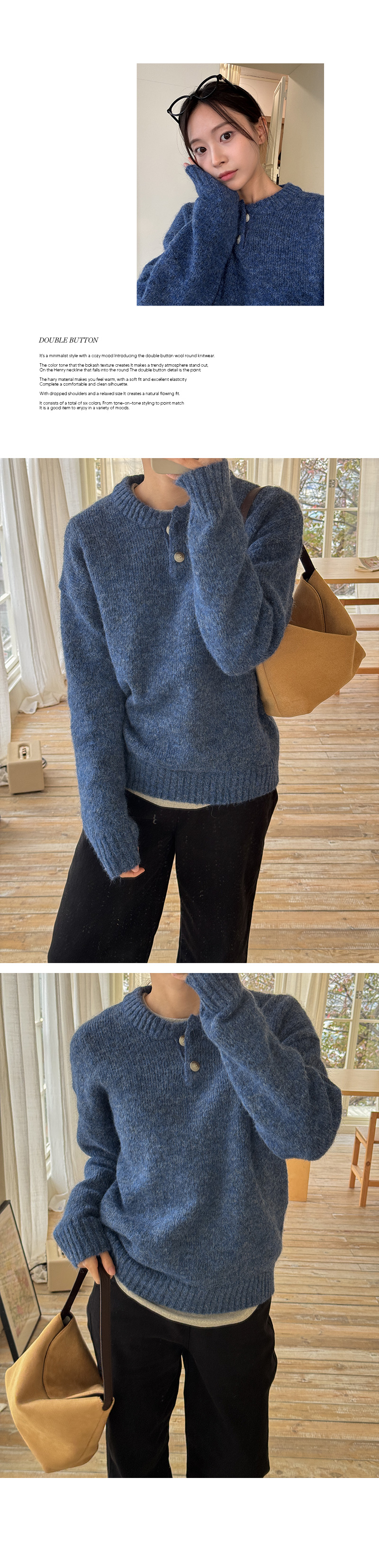 DOUBLE BUTTON WOOL ROUND KNIT