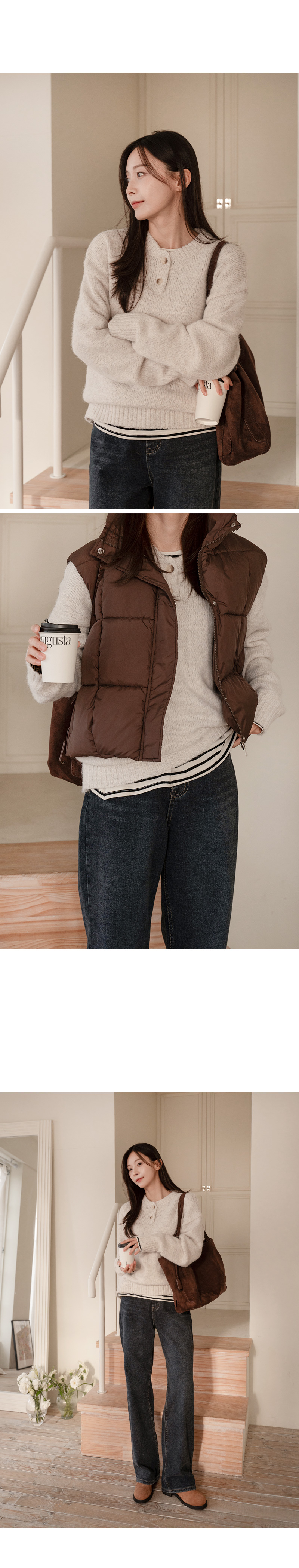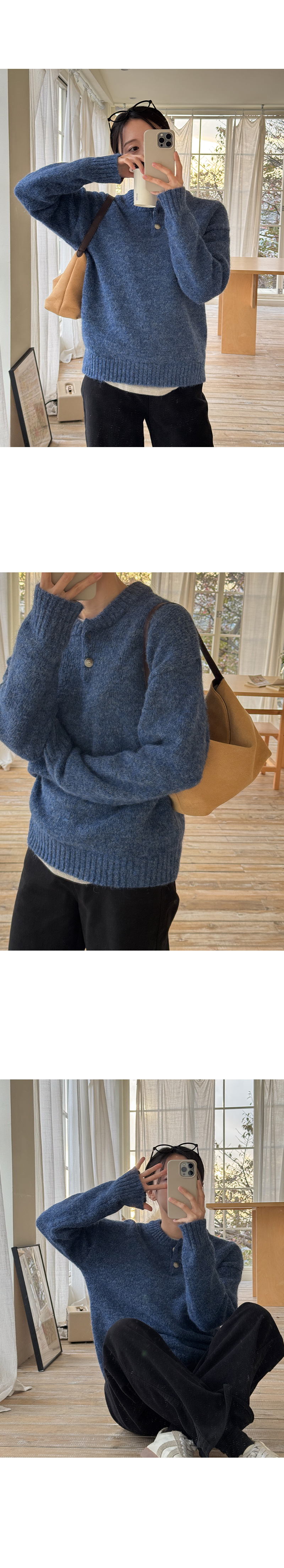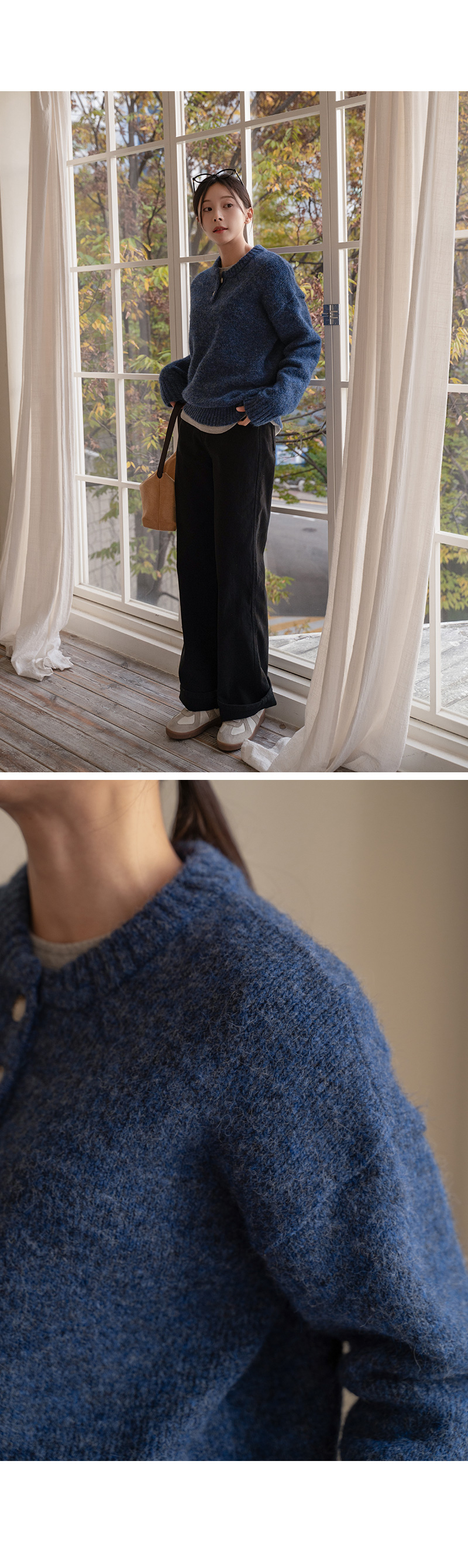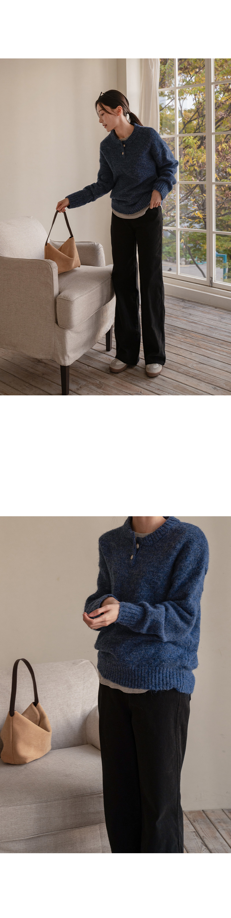 DOUBLE BUTTON WOOL ROUND KNIT
