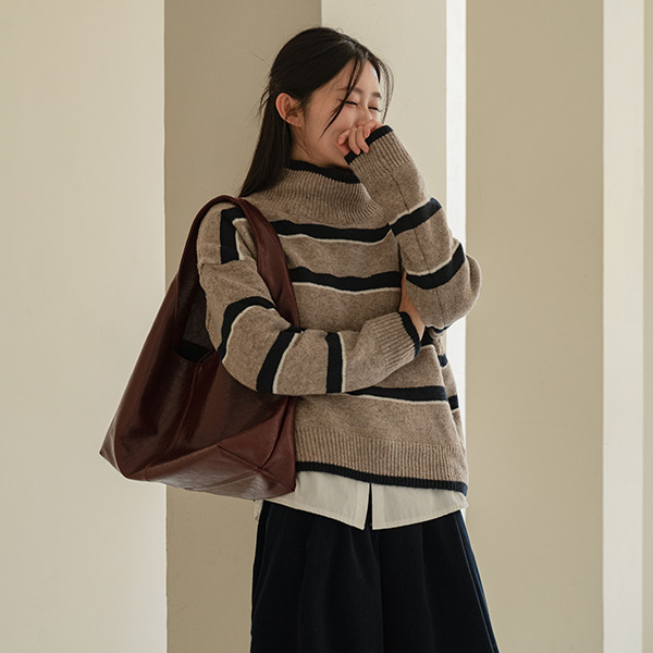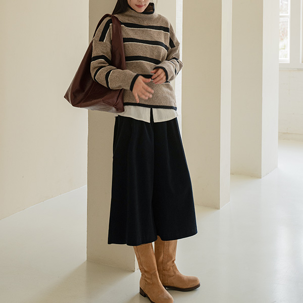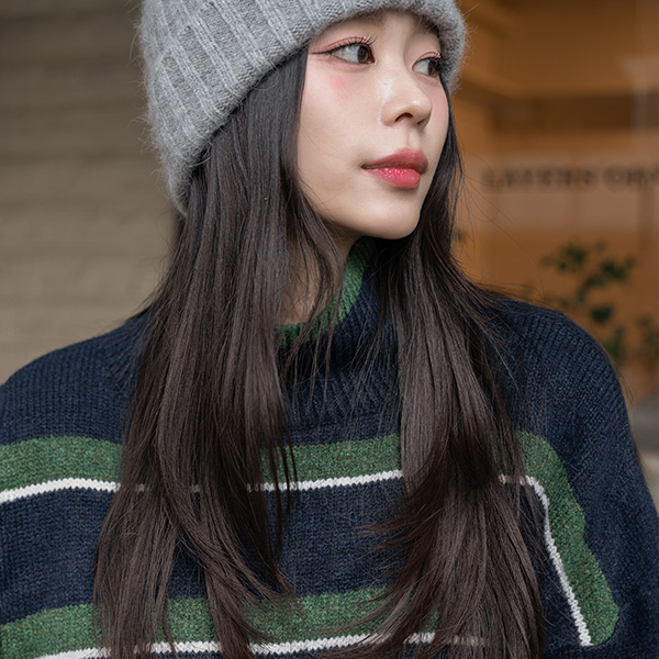 HALF-TURTLENECK STRIPE WOOL KNITWEAR