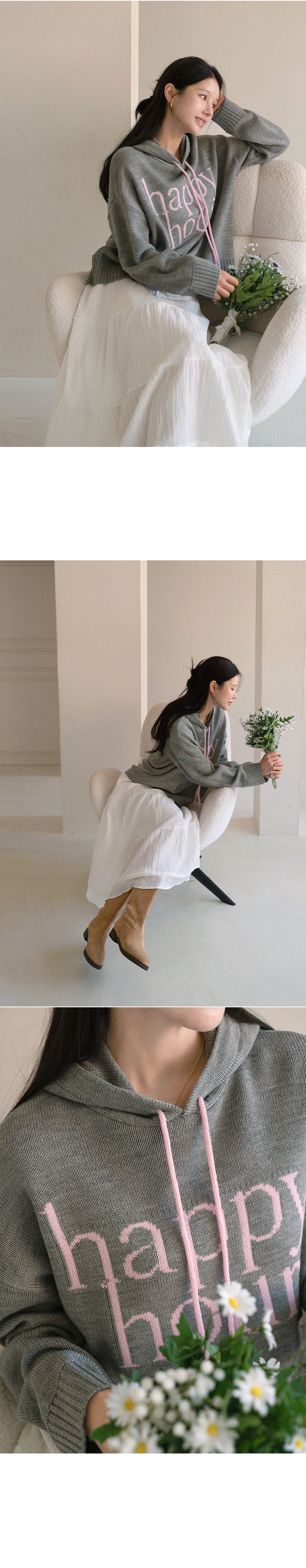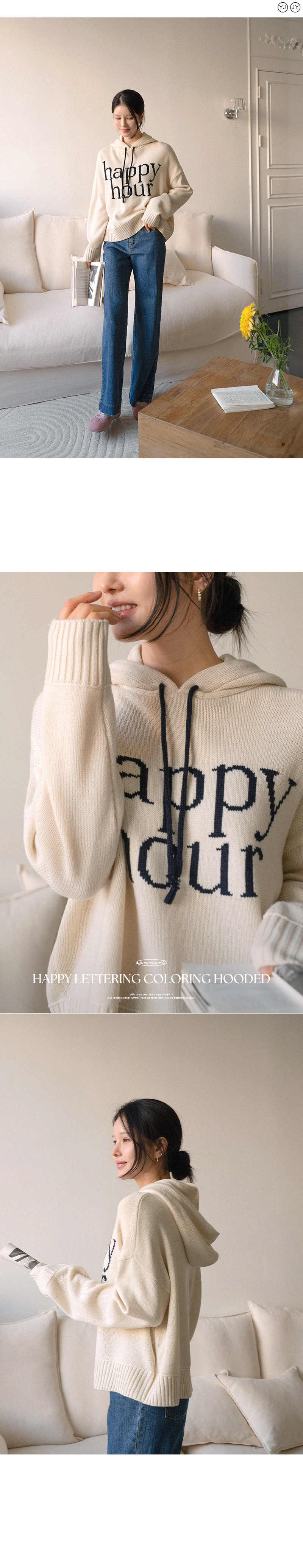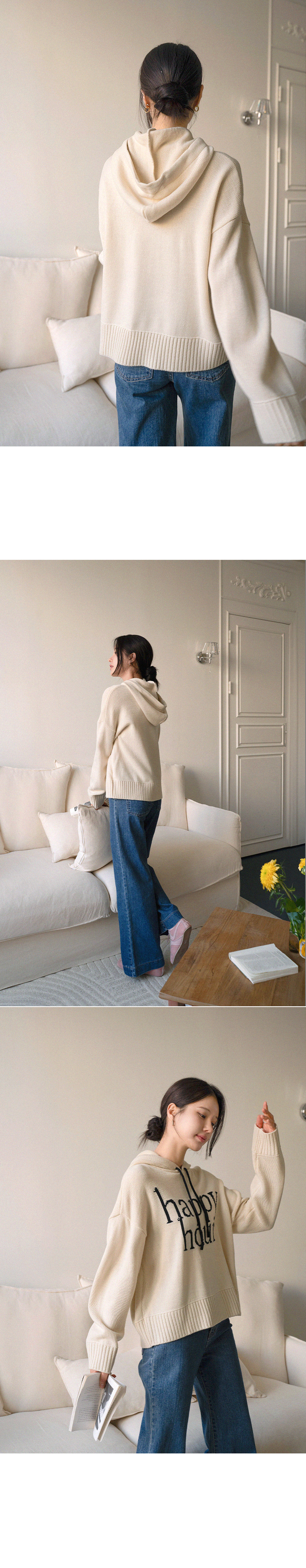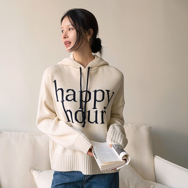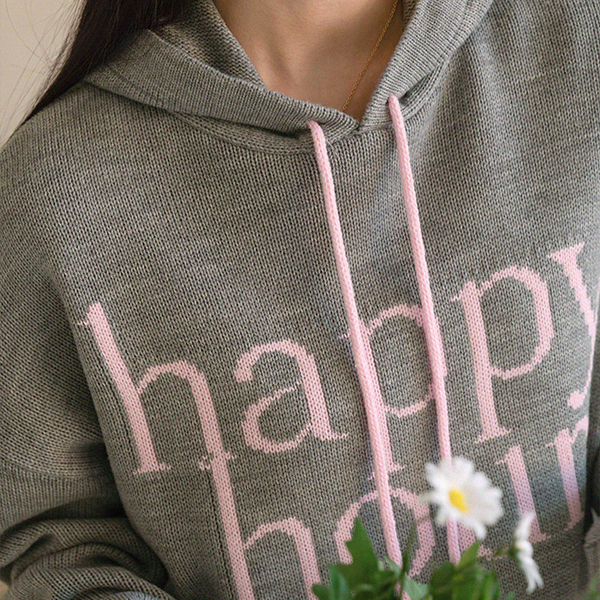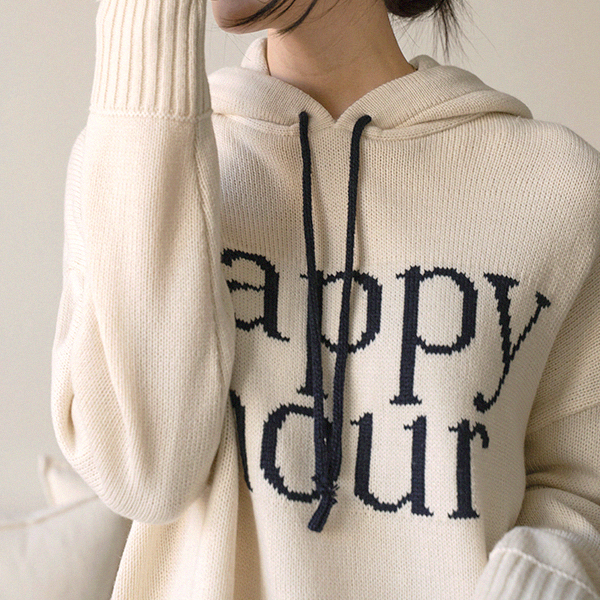 HAPPY LETTERING COLORING HOODED KNITWEAR