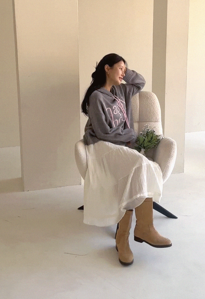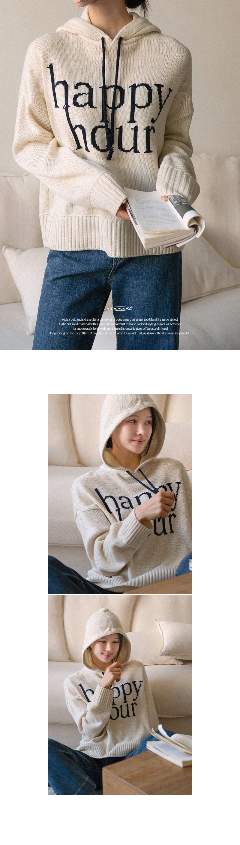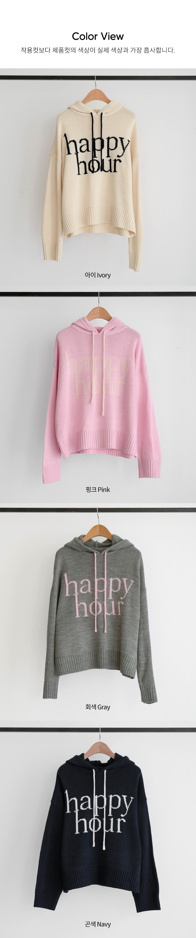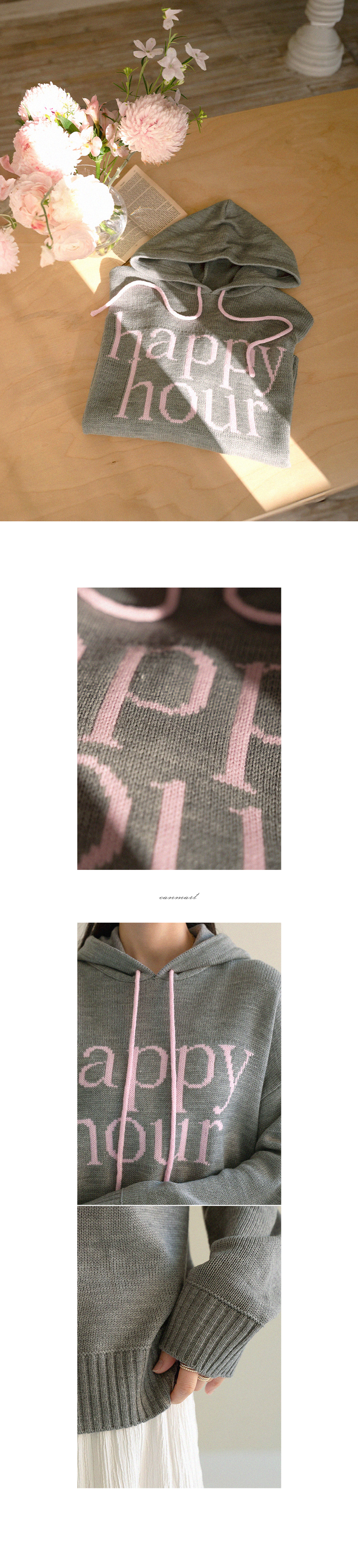 HAPPY LETTERING COLORING HOODED KNITWEAR