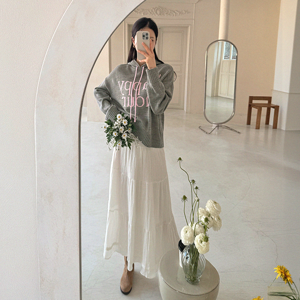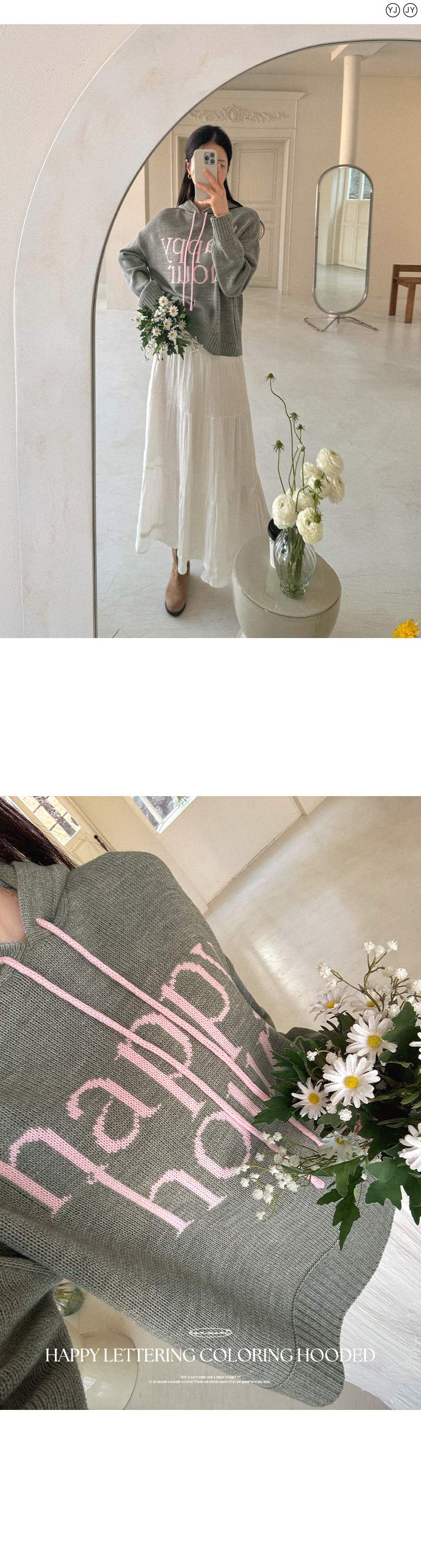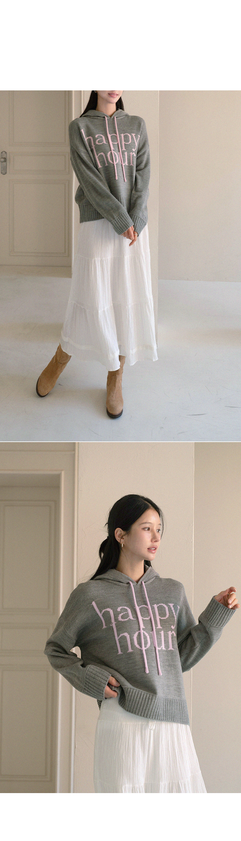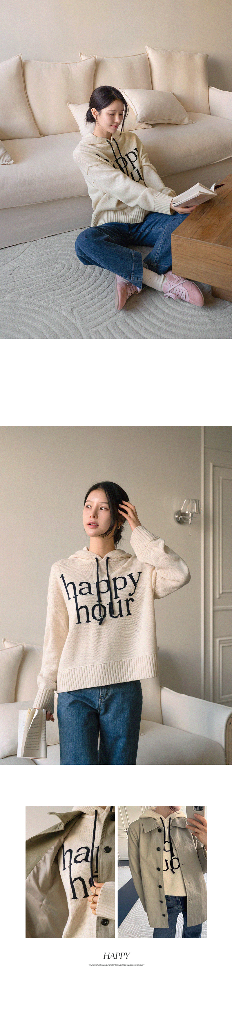 HAPPY LETTERING COLORING HOODED KNITWEAR