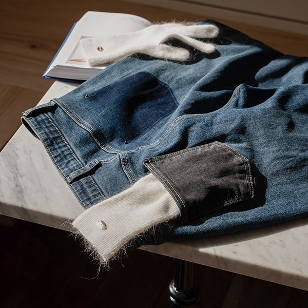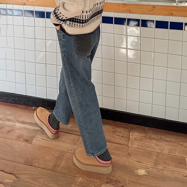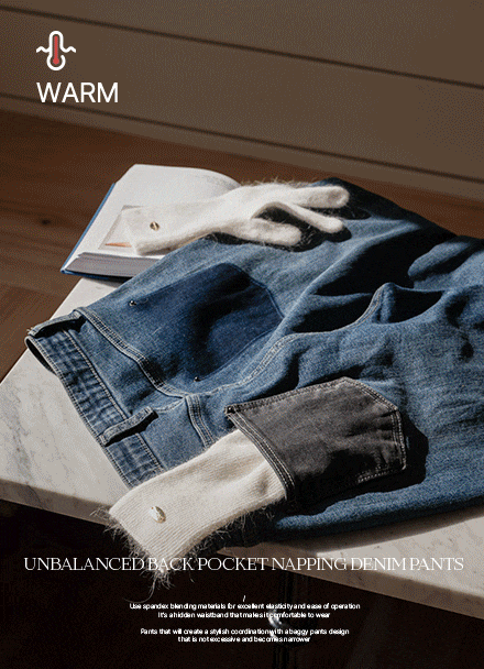 UNBALANCED BACK POCKET NAPPING DENIM PANTS