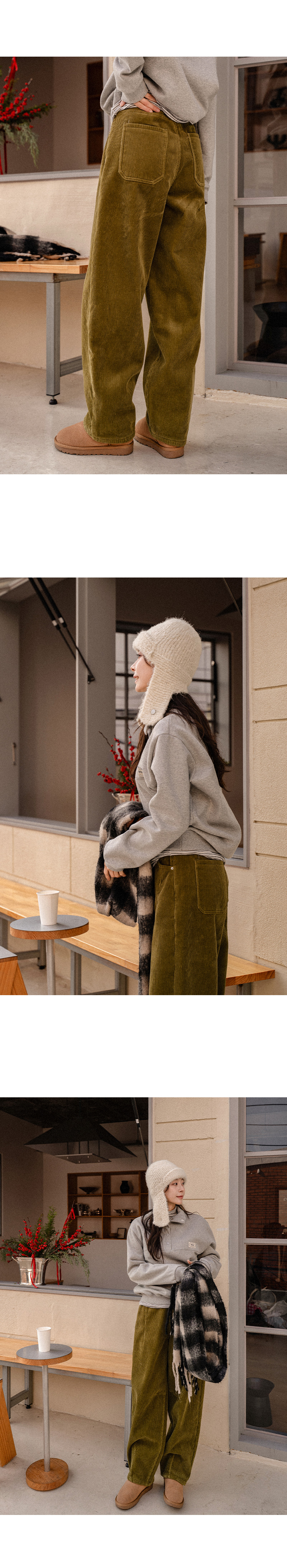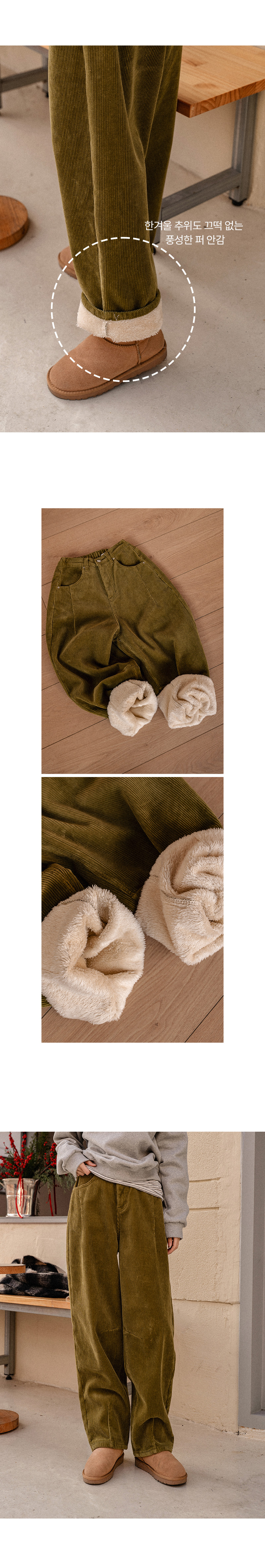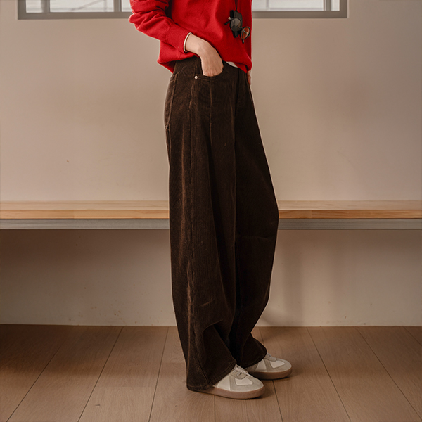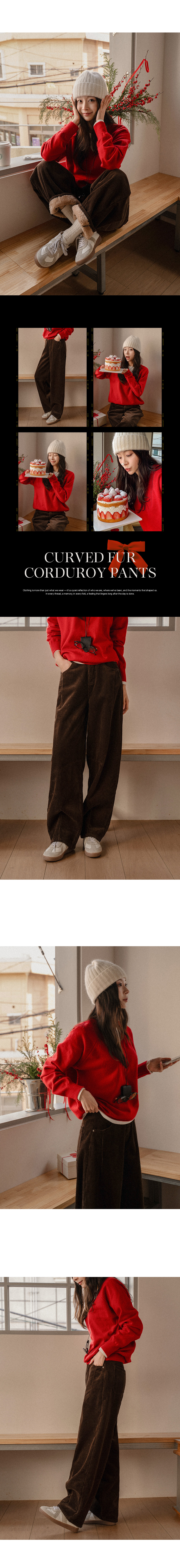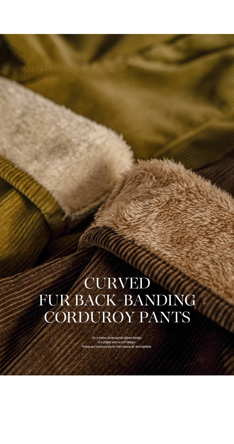 CURVED FUR BACK-BANDED CORDUROY PANTS