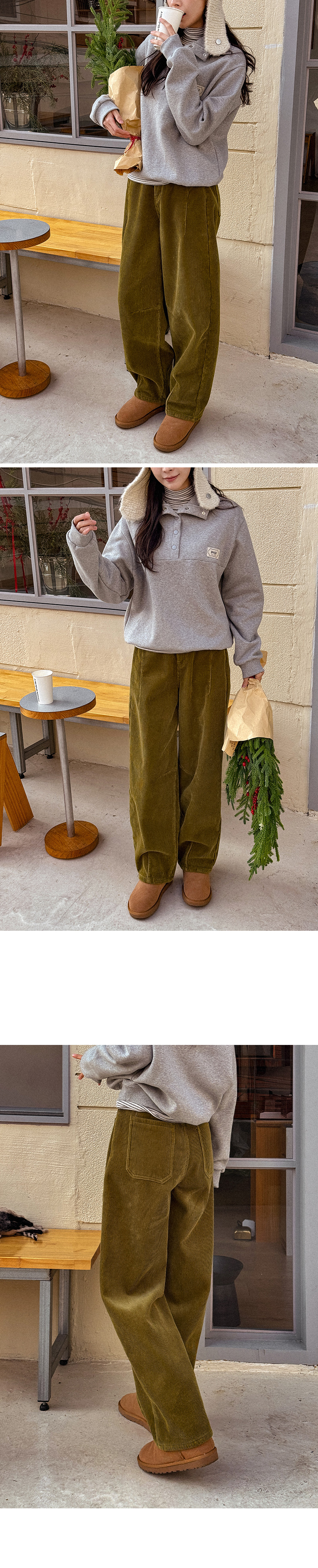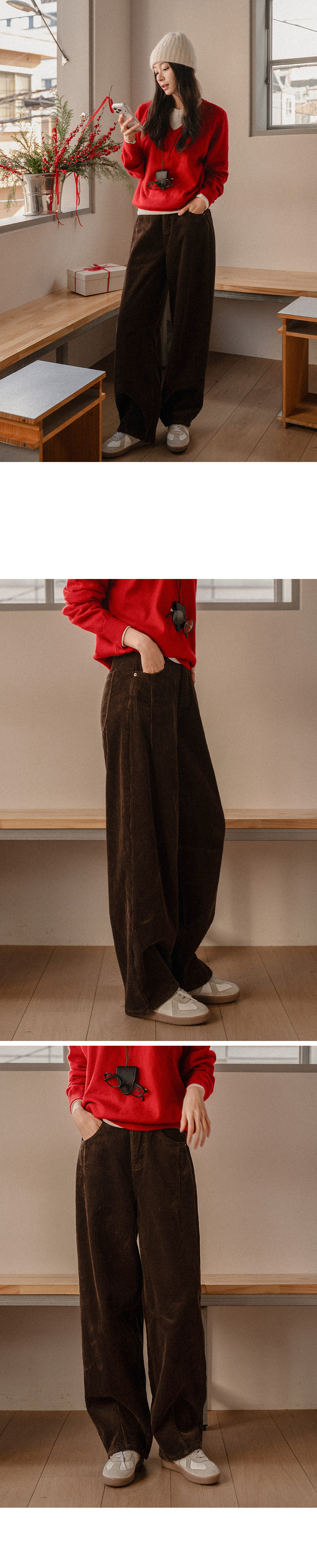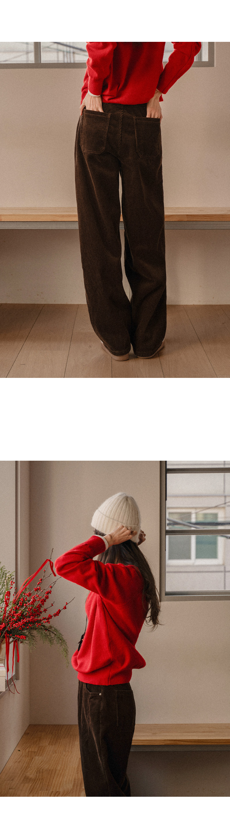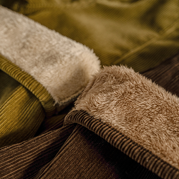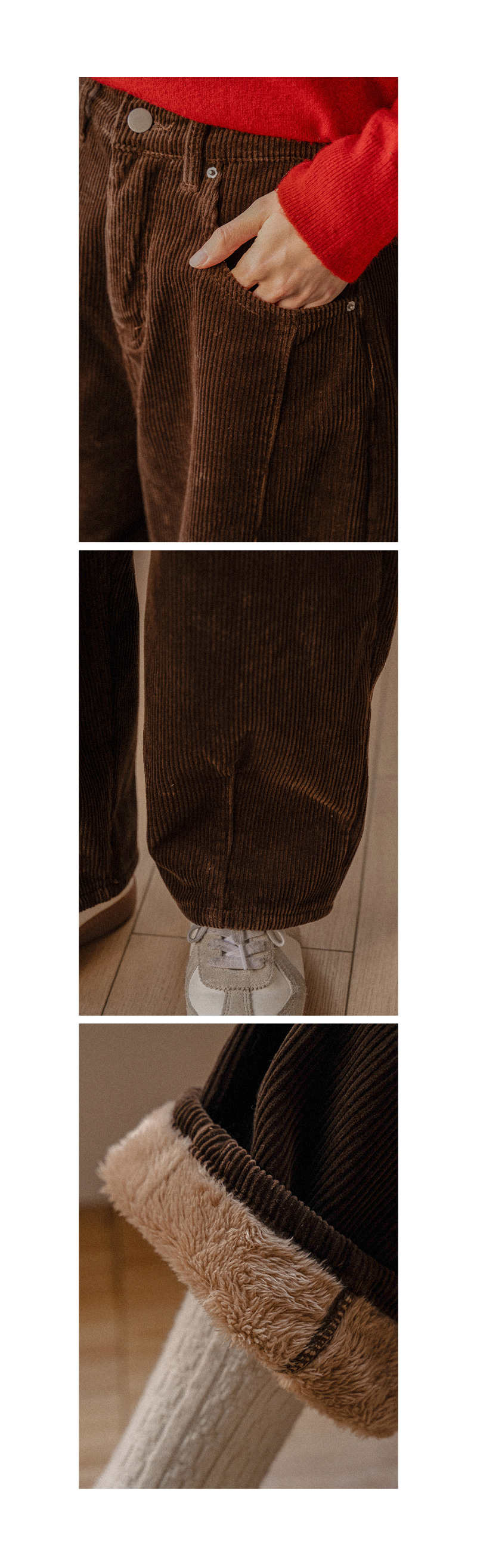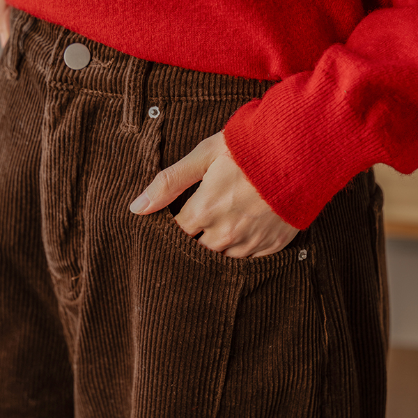 CURVED FUR BACK-BANDED CORDUROY PANTS