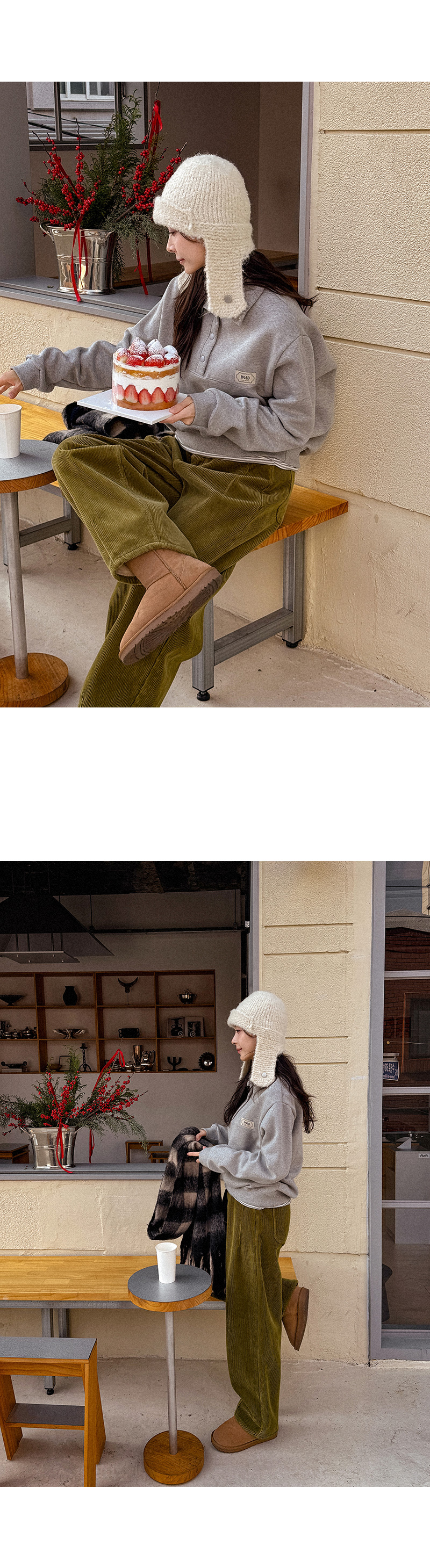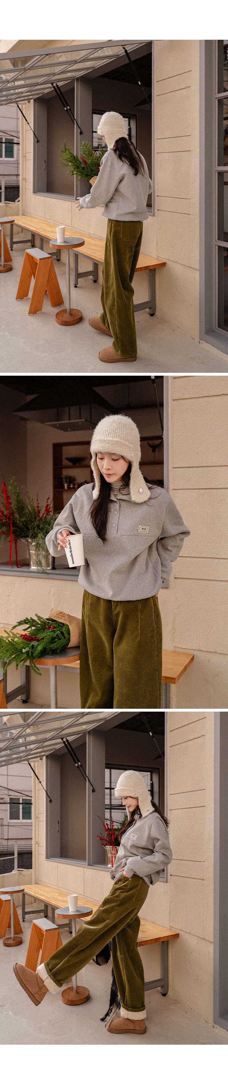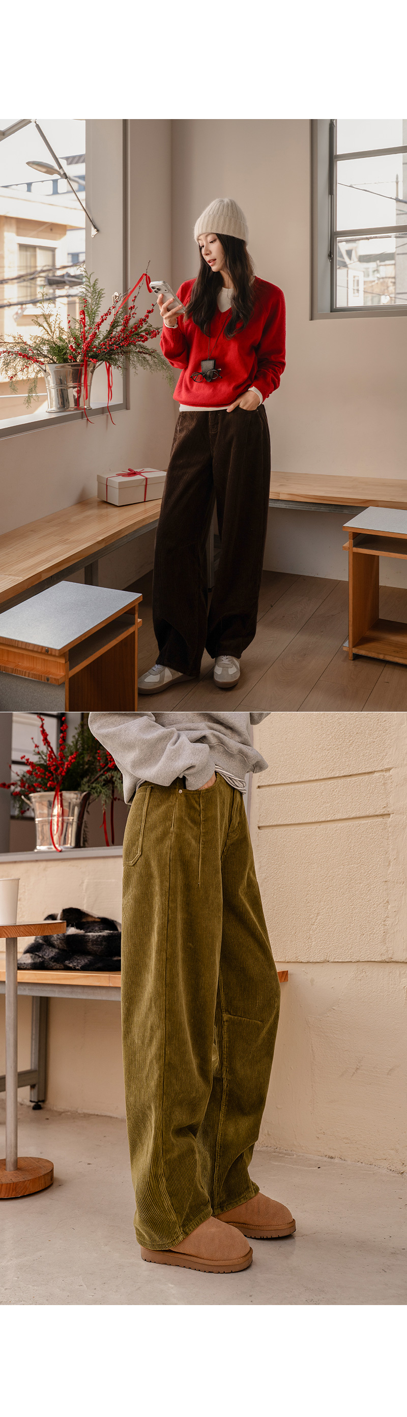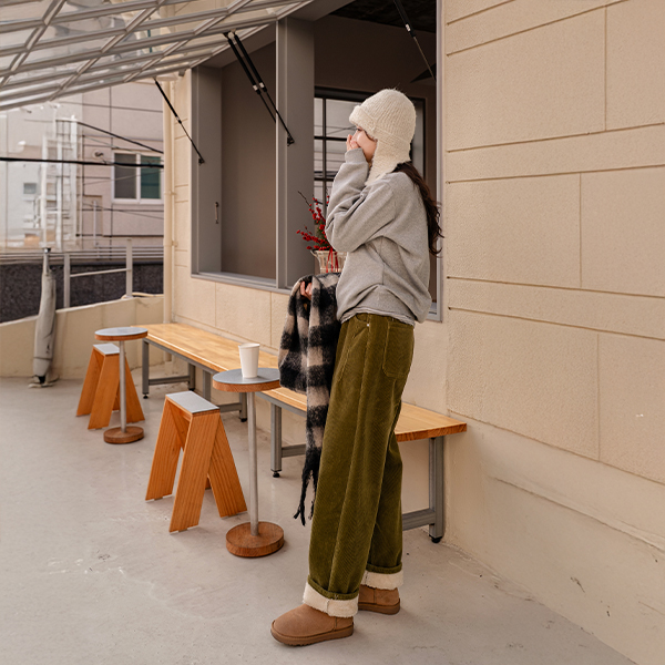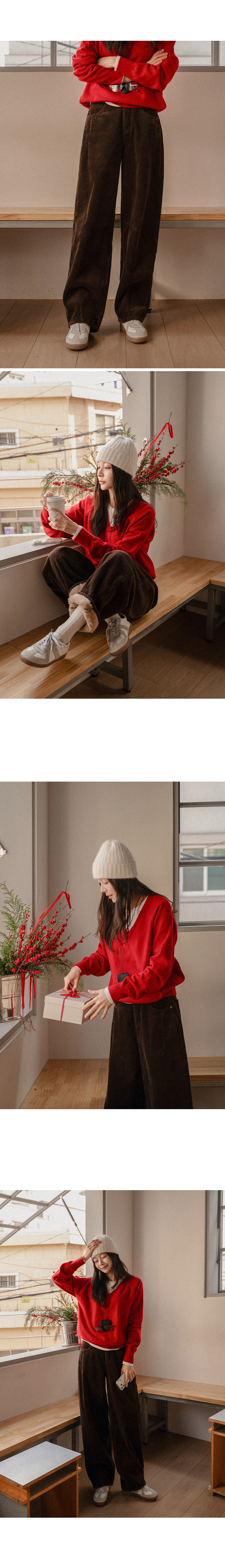 CURVED FUR BACK-BANDED CORDUROY PANTS
