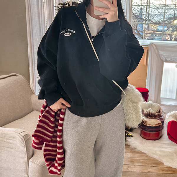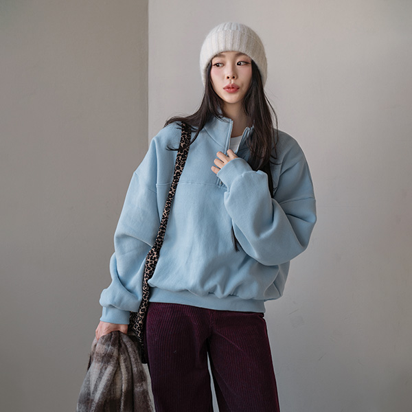 MOMENT WOOL NAPPING SEMI-ZIPUP SWEATSHIRT