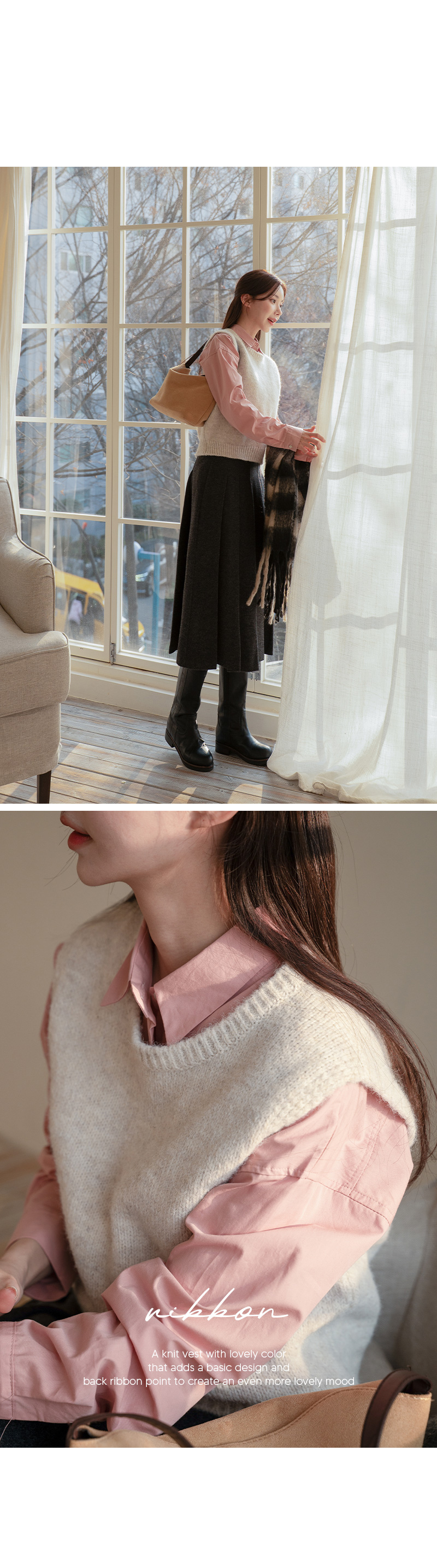 COMO BACK RIBBON WOOL KNIT VEST