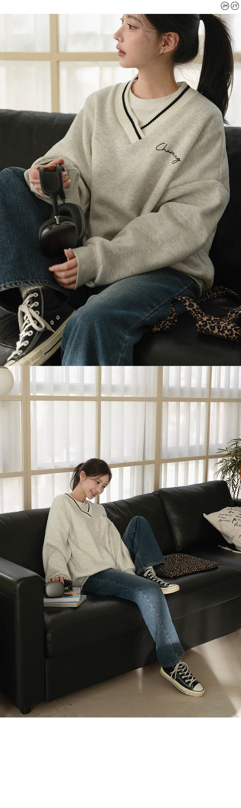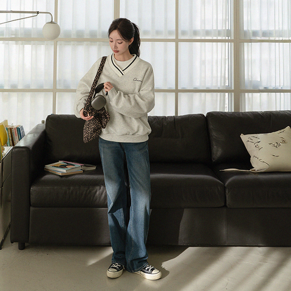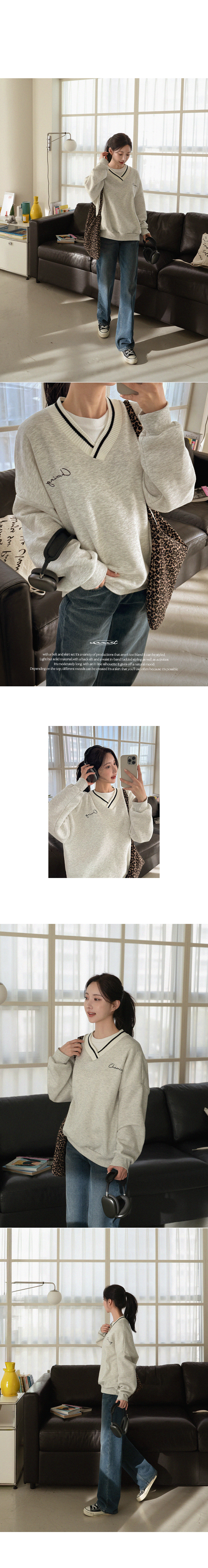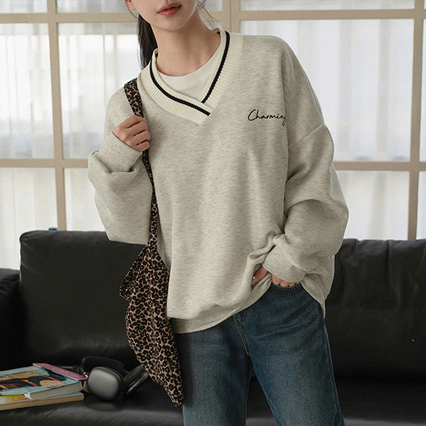 RING NAPPING KNIT V SWEATSHIRT
