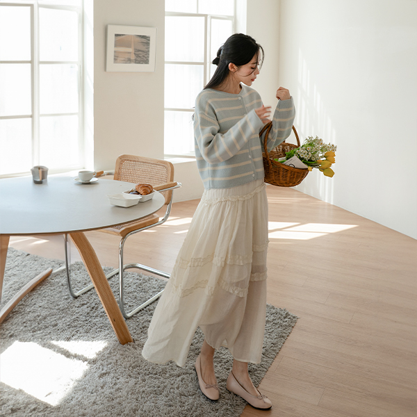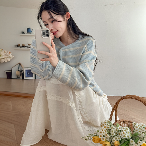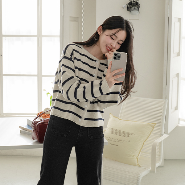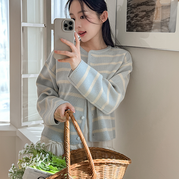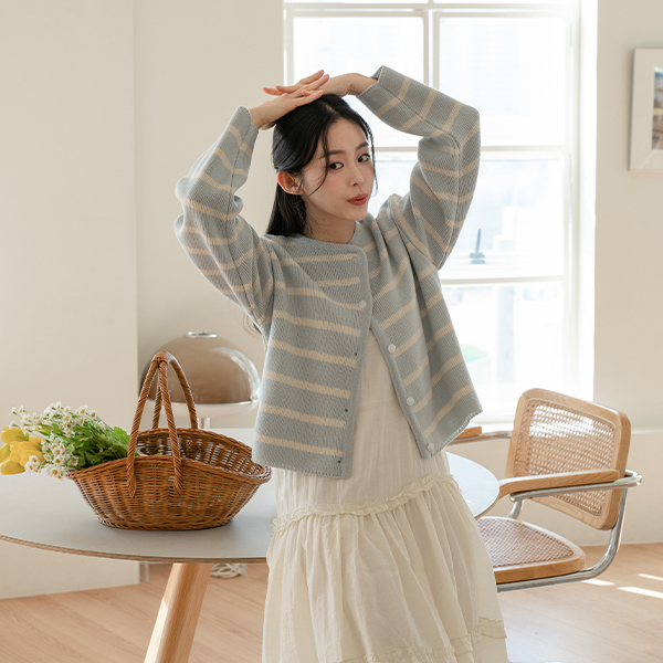 COLORING STRIPE ROUND KNIT CARDIGAN