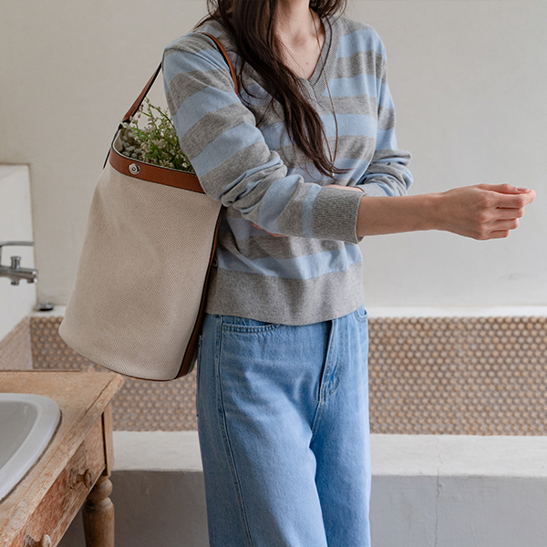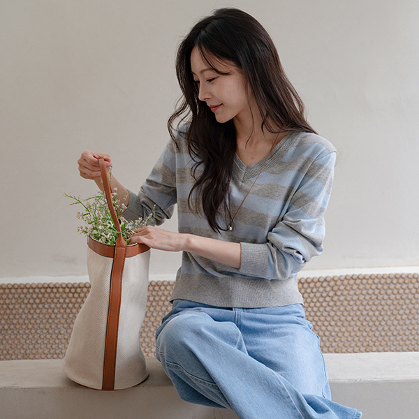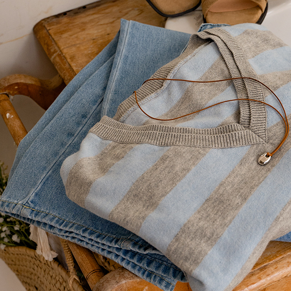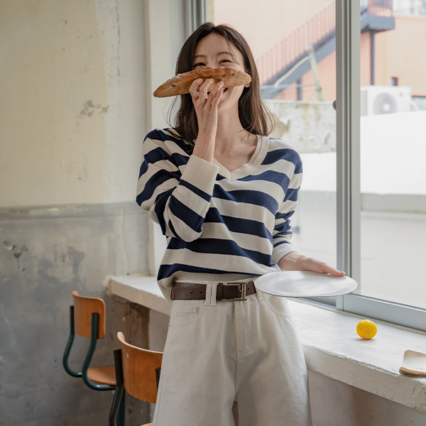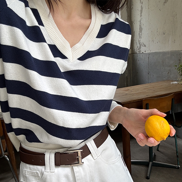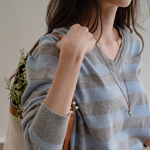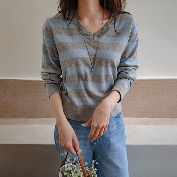 DOUBLE NECK STRIPED V-NECK KNIT