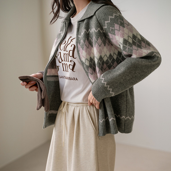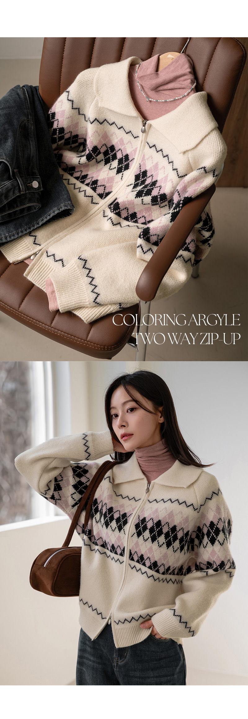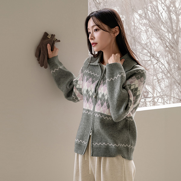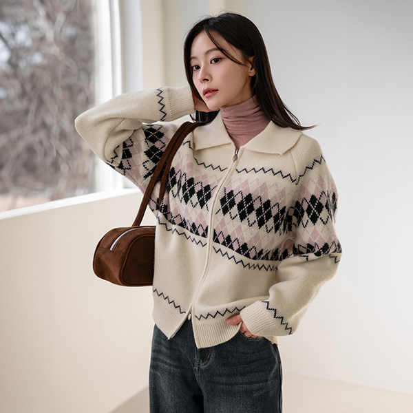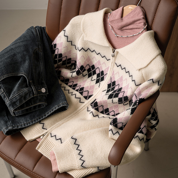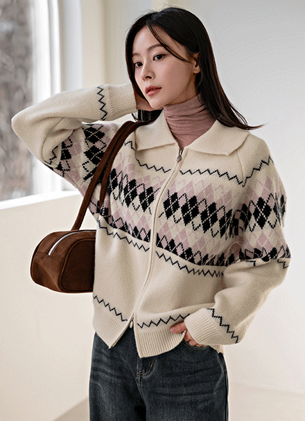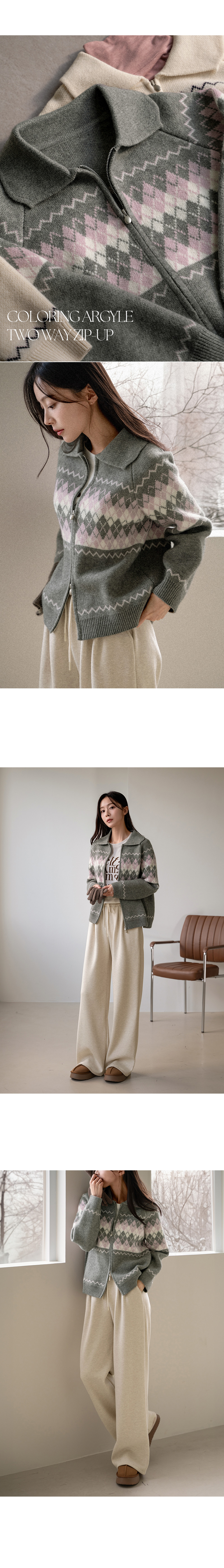 COLORING ARGYLE TWO WAY ZIP-UP