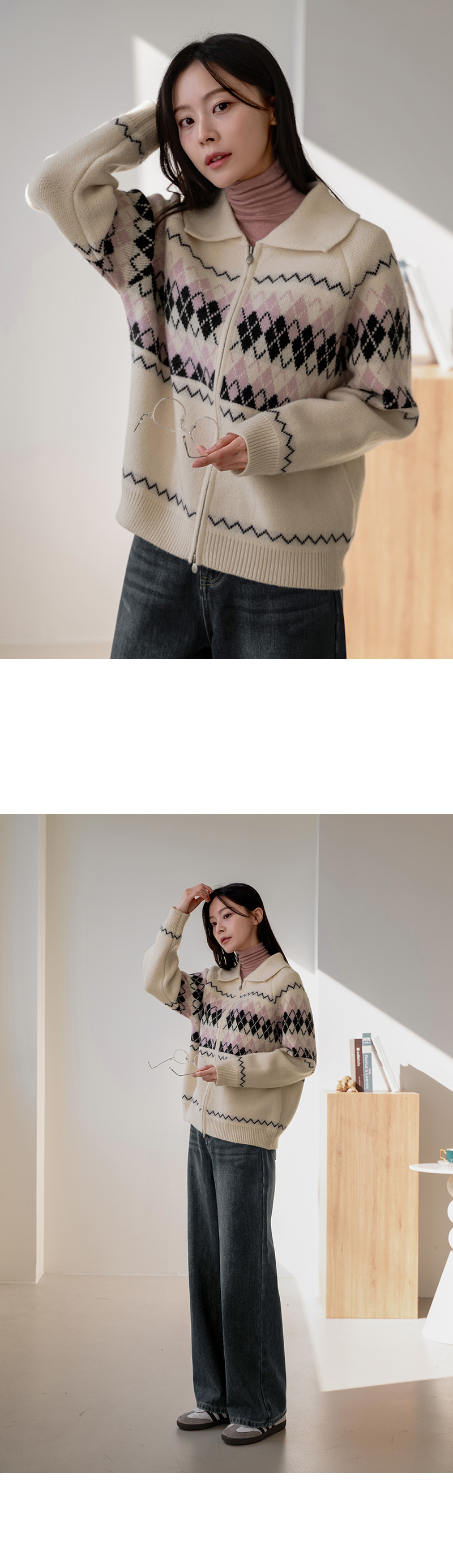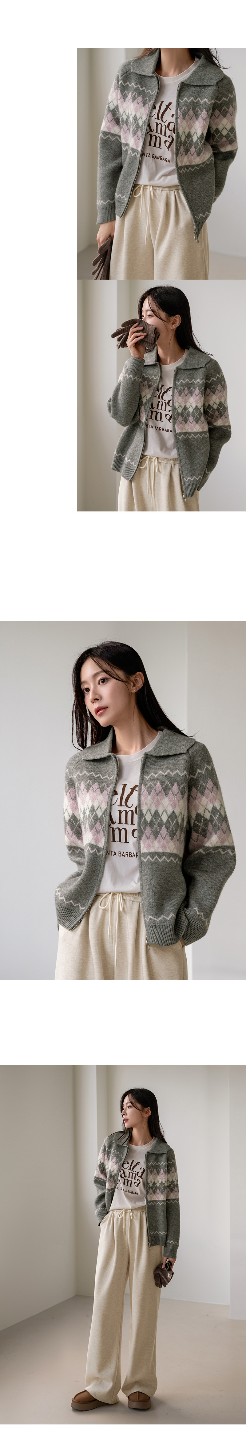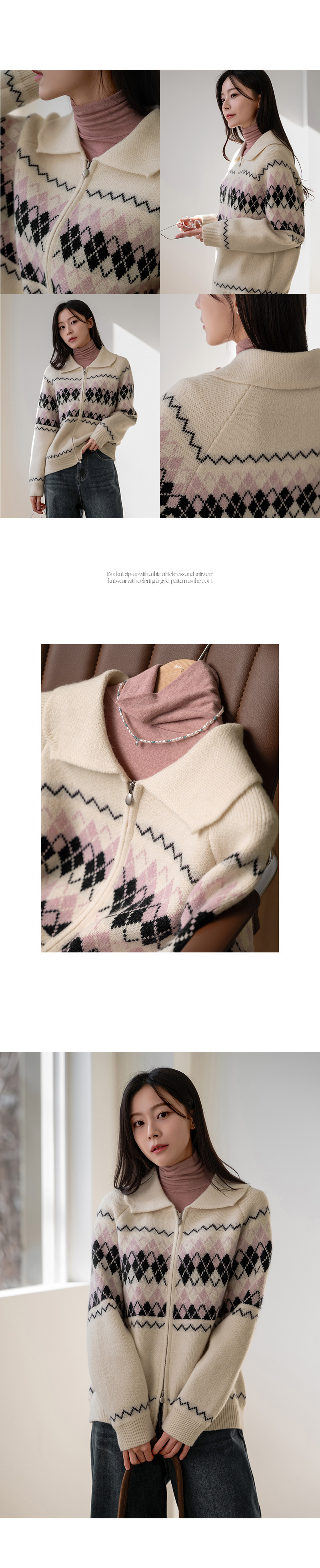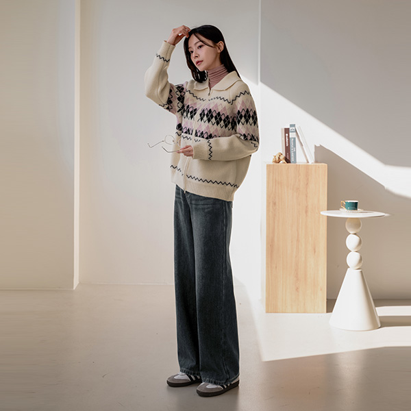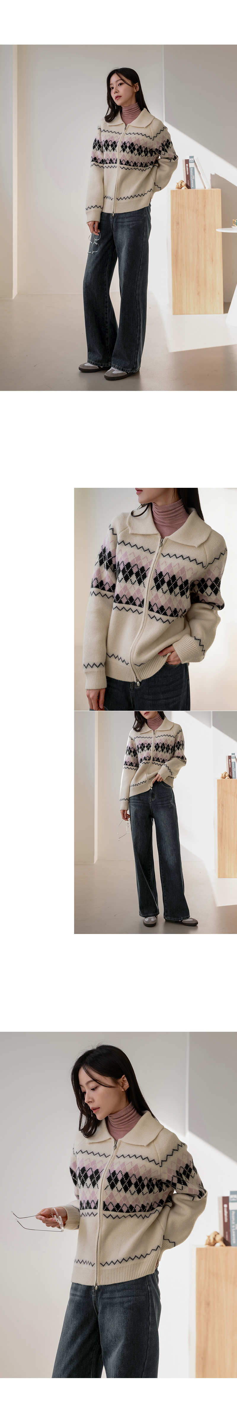 COLORING ARGYLE TWO WAY ZIP-UP