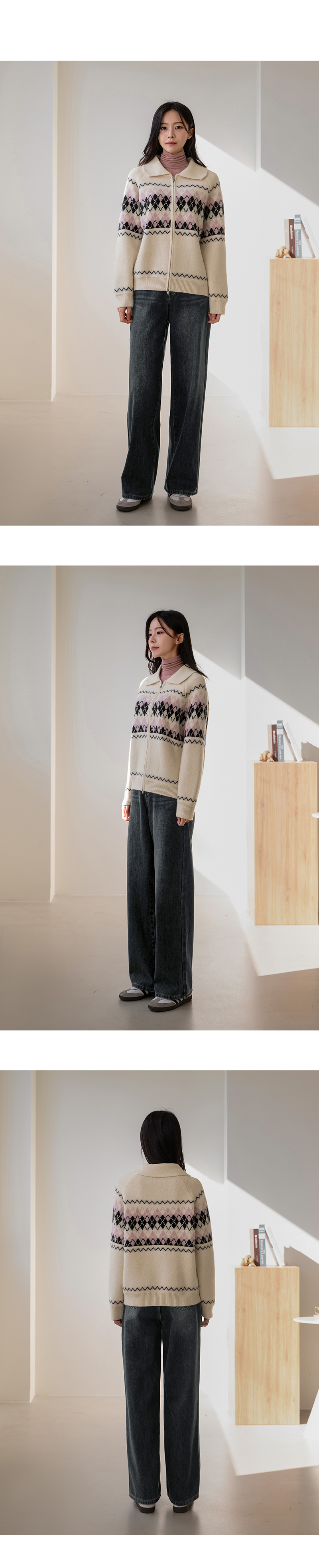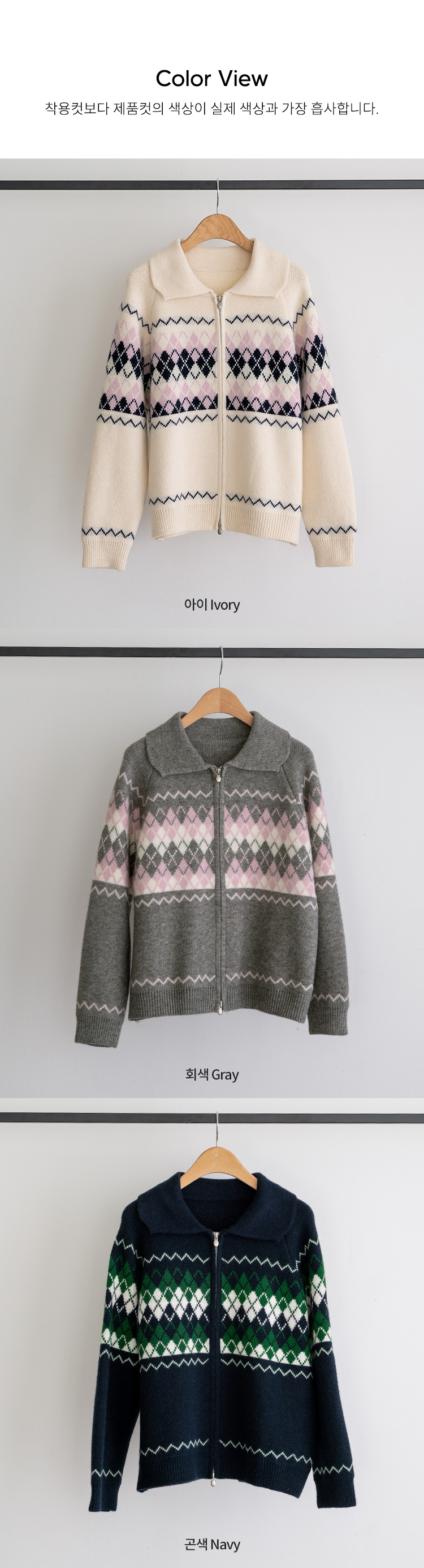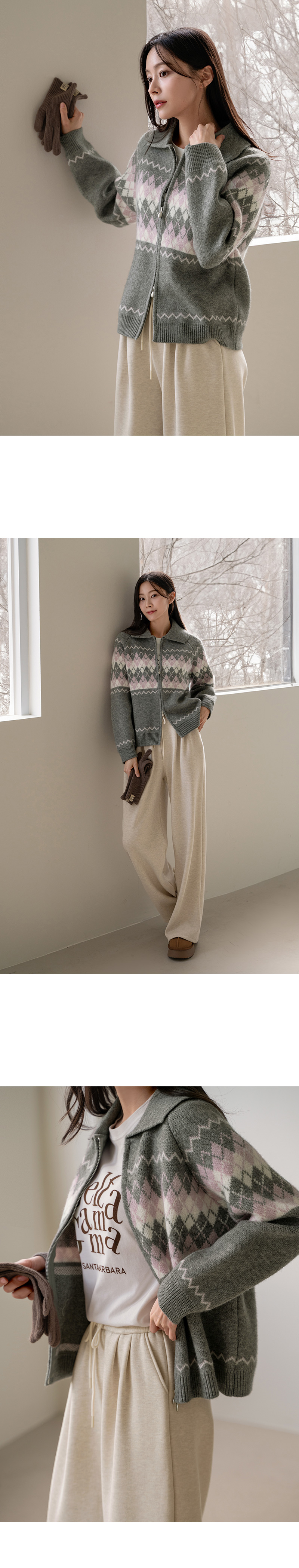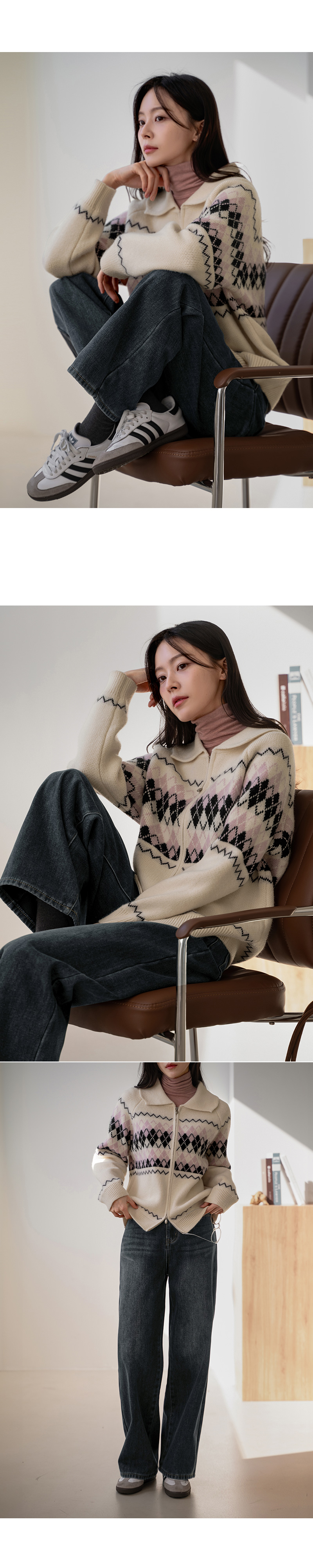 COLORING ARGYLE TWO WAY ZIP-UP