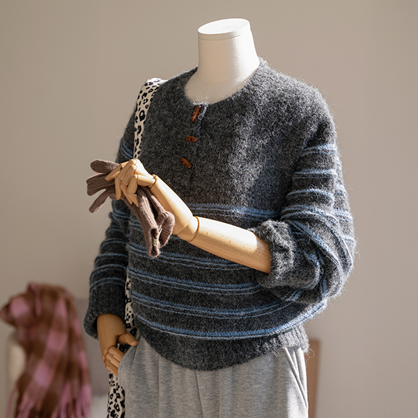 SOYBEAN BUTTON STRIPE RAMSWOOL KNITWEAR