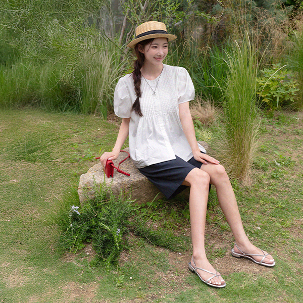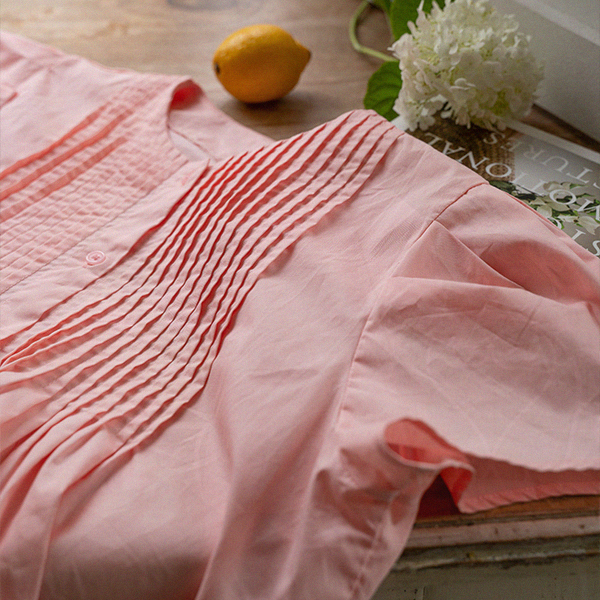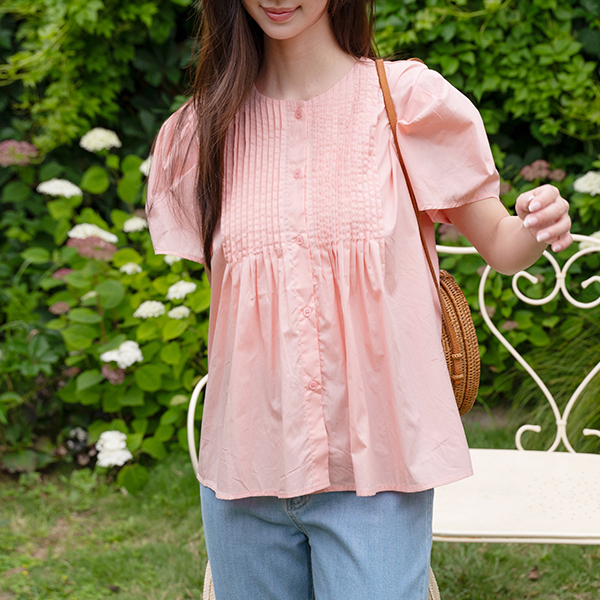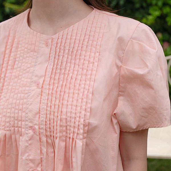 PINTUCK PUFF CAP SLEEVE BLOUSE