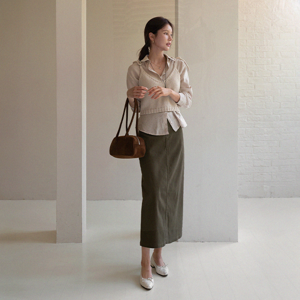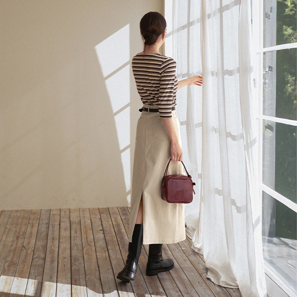 TWILL BELTED SKIRT