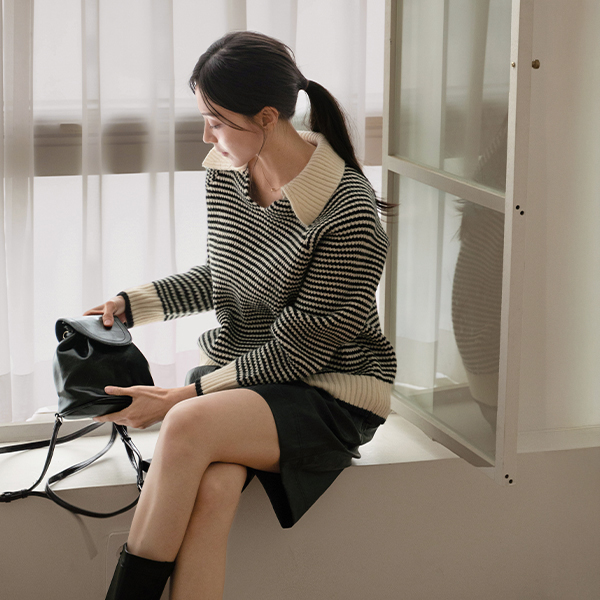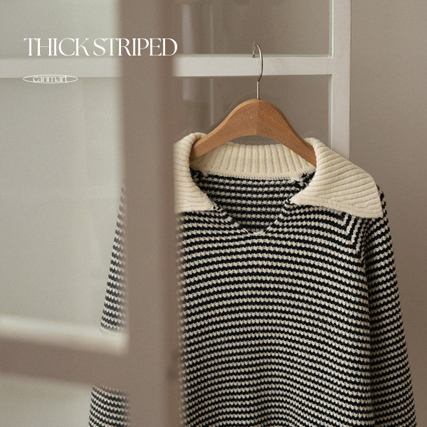 THICK STRIPED COLLAR KNITWEAR