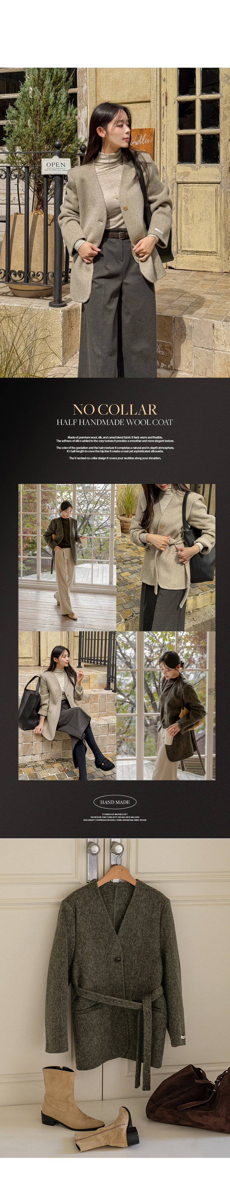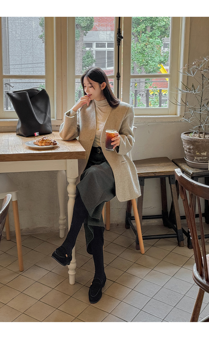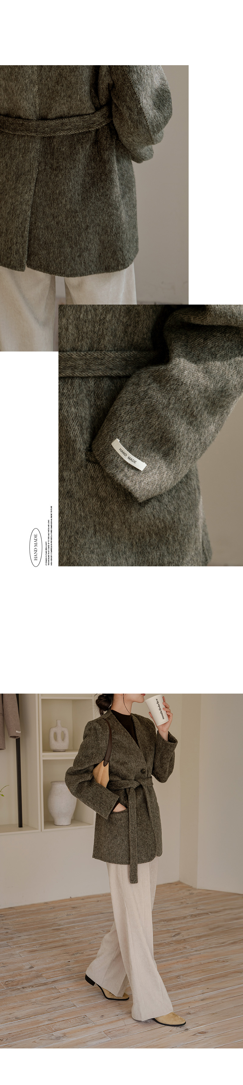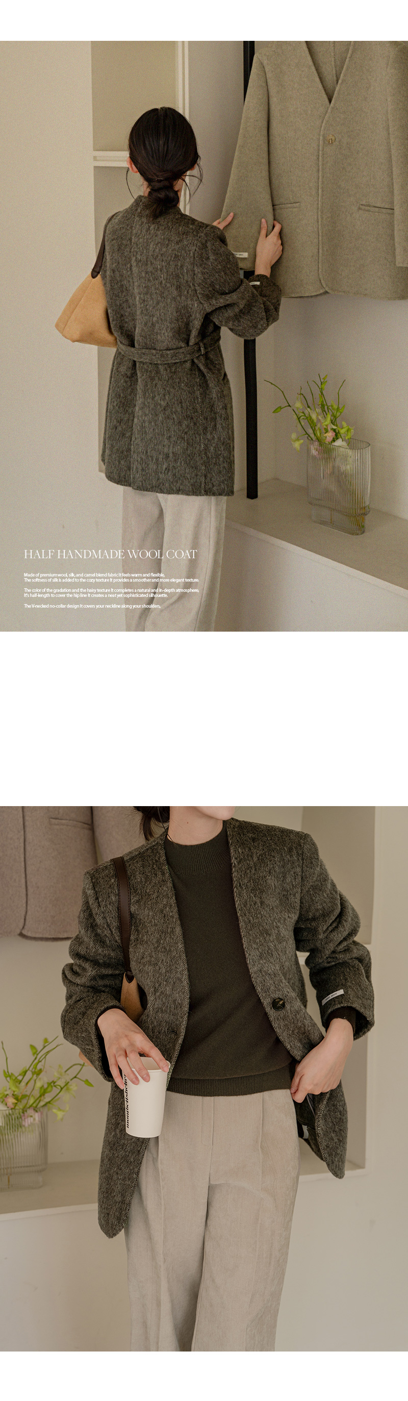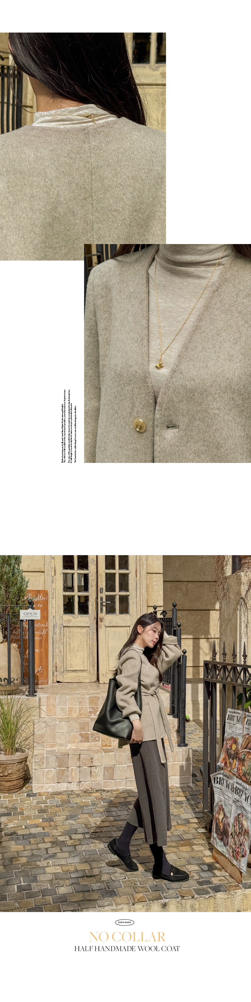 NO COLLAR HALF HANDMADE WOOL COAT