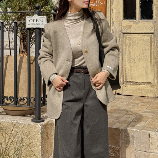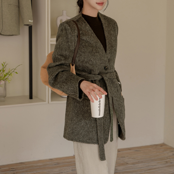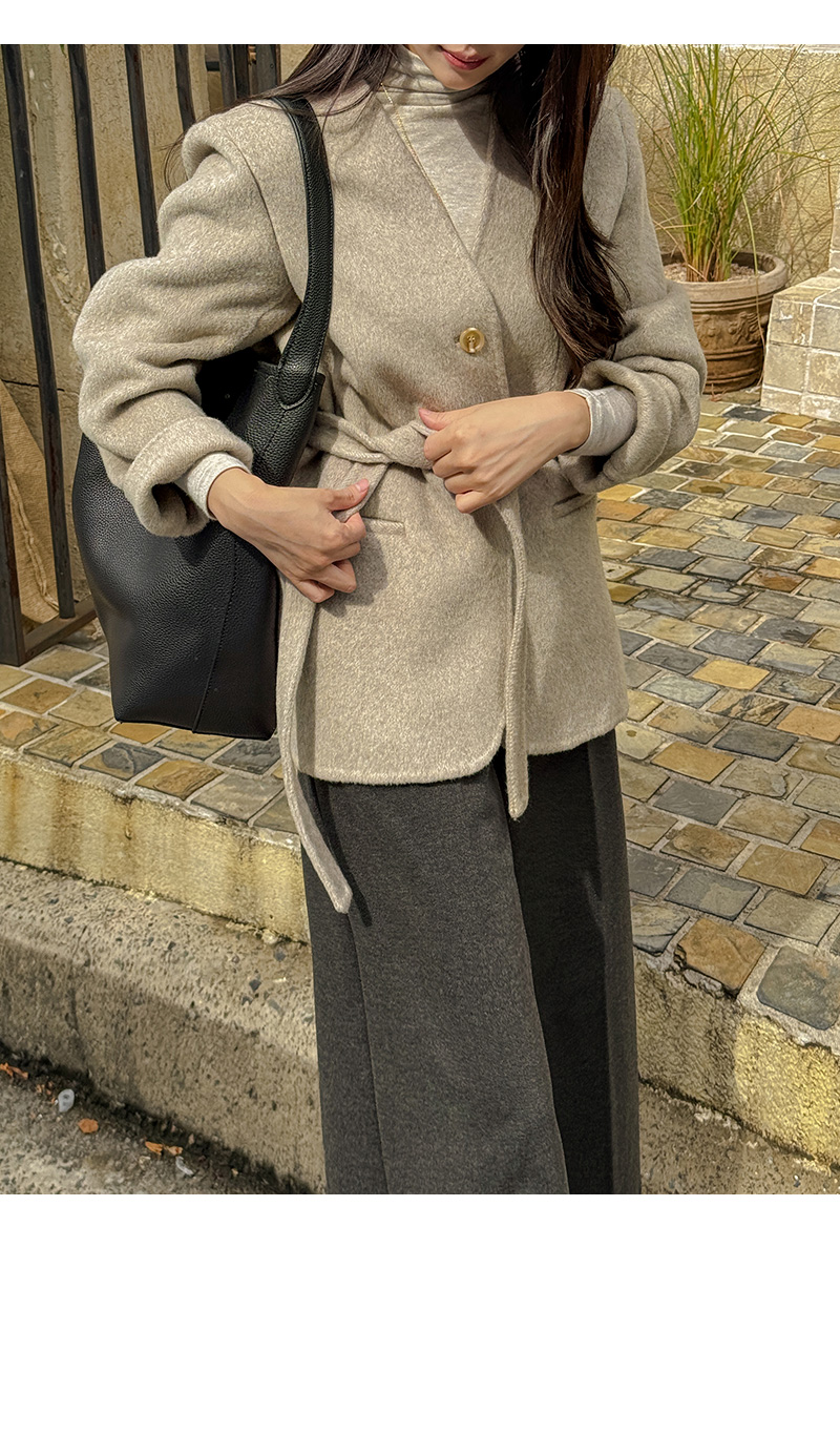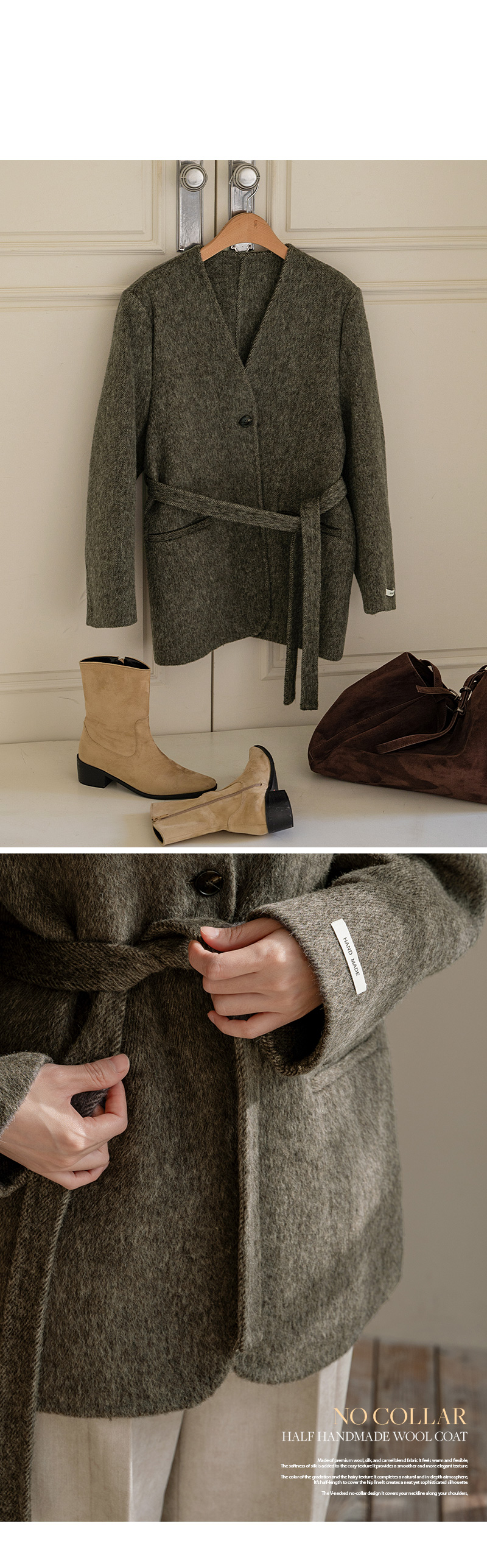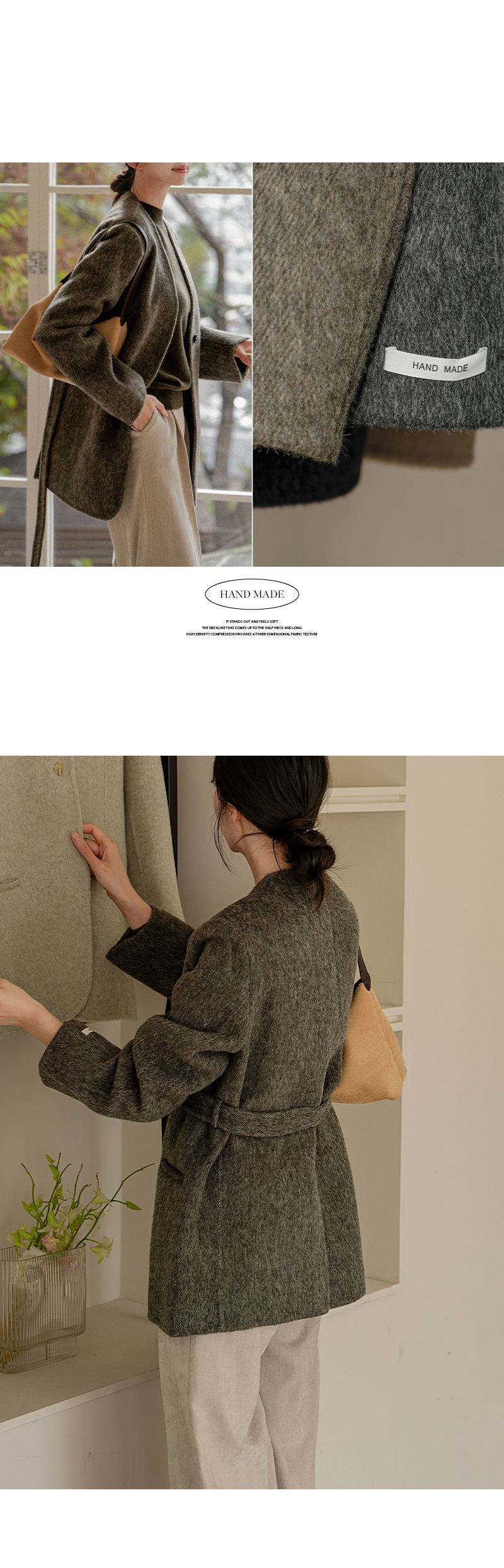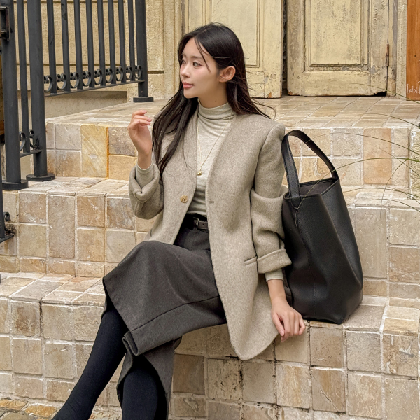 NO COLLAR HALF HANDMADE WOOL COAT