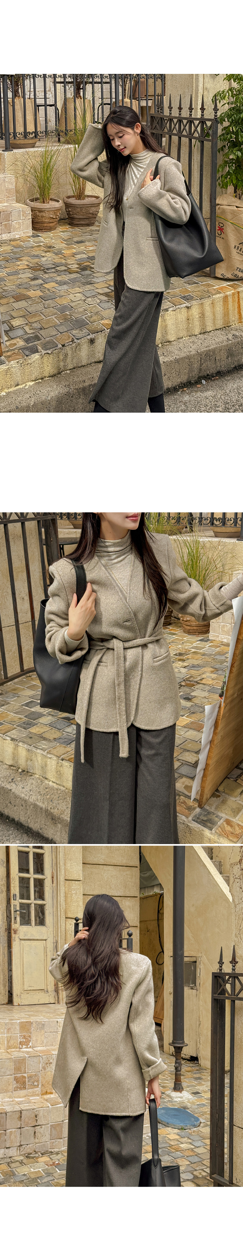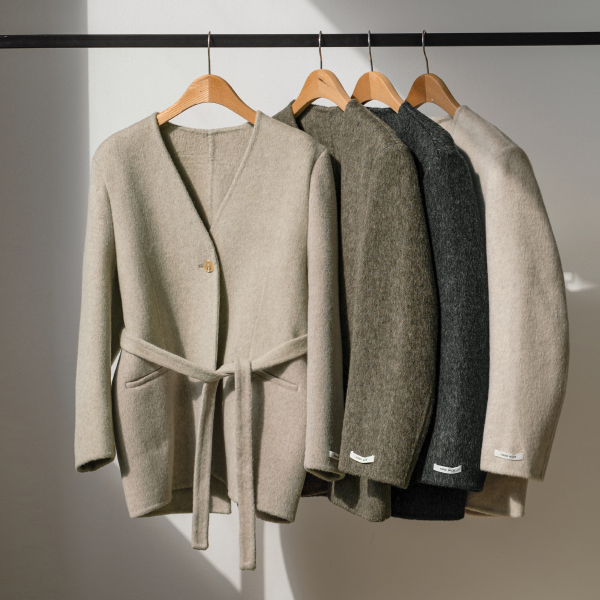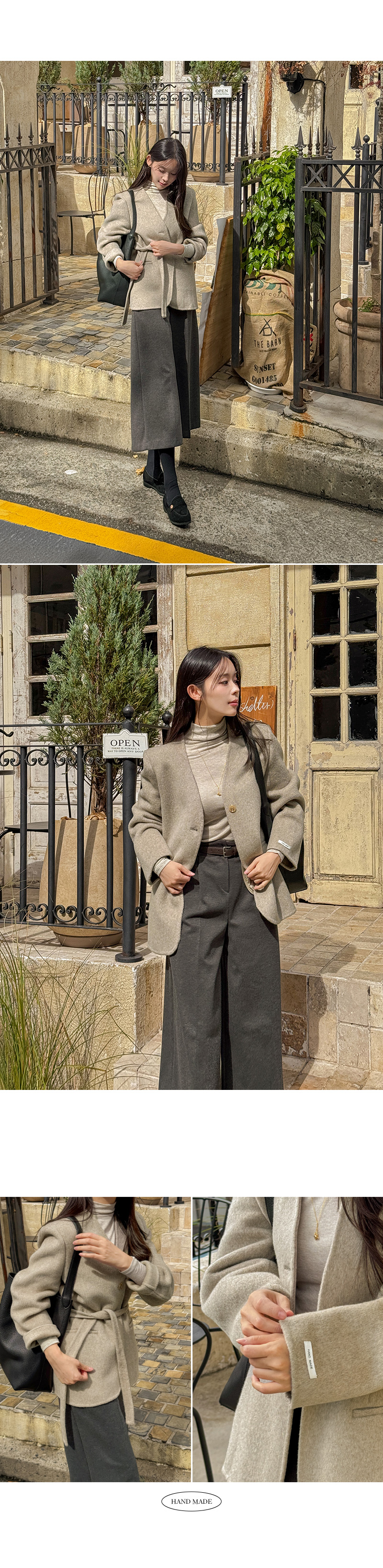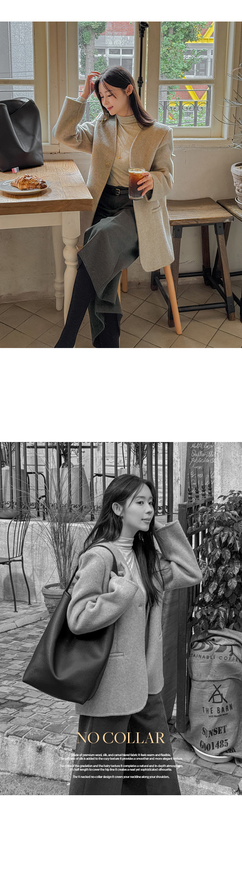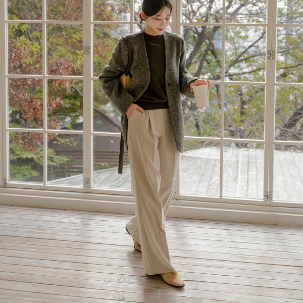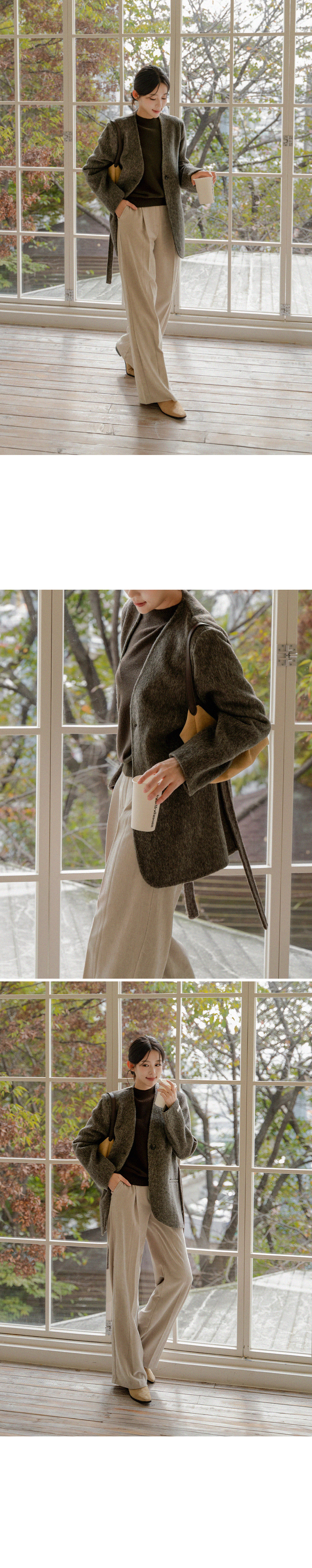 NO COLLAR HALF HANDMADE WOOL COAT