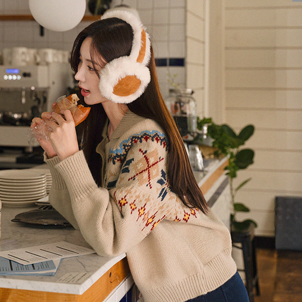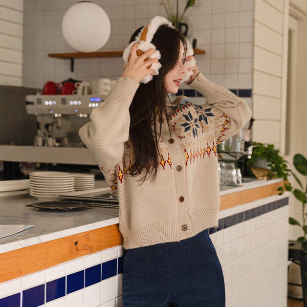 SNOWFLAKE ARGYLE KNIT CARDIGAN