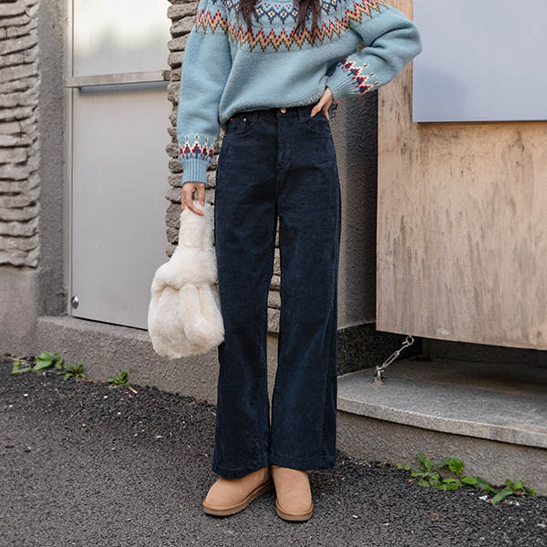 PEANUT NAPPING CORDUROY BANDING WIDE PANTS