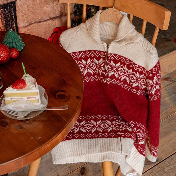 SNOW JACQUARD ZIPPER WOOL CARDIGAN