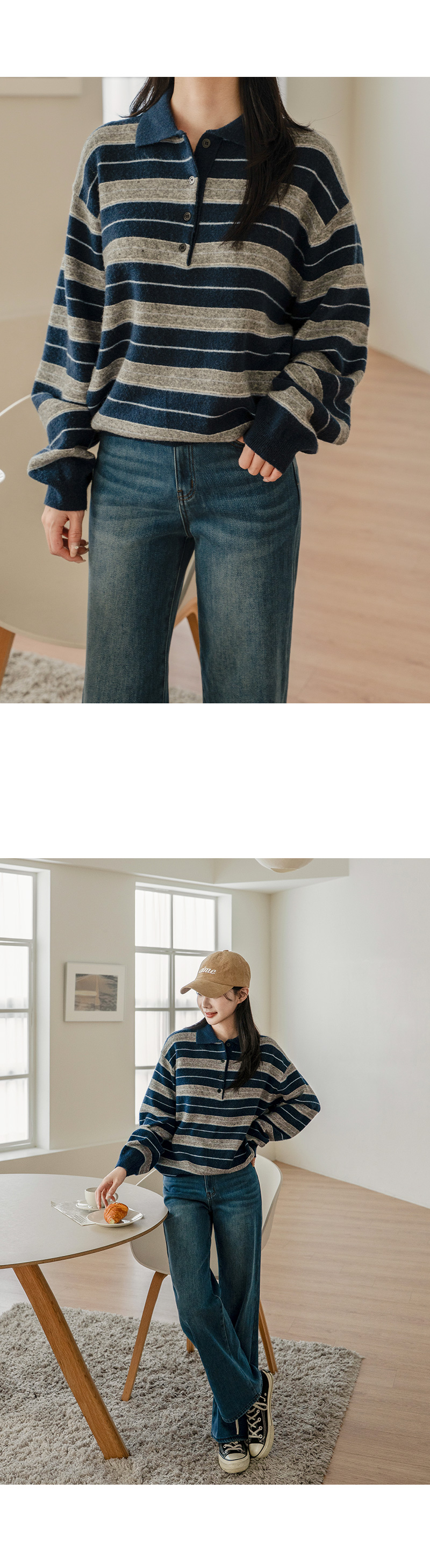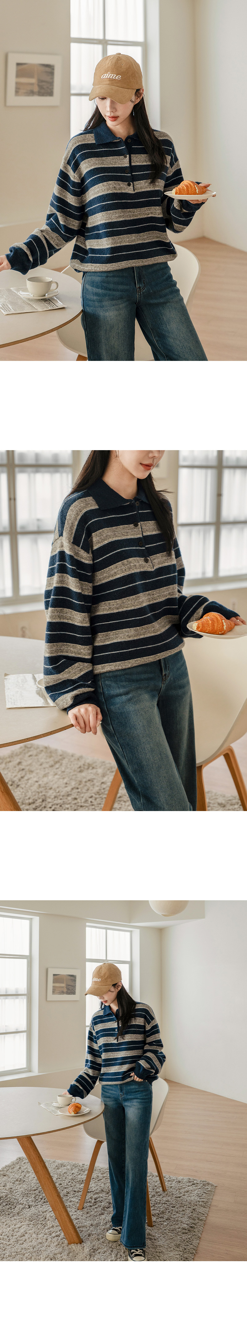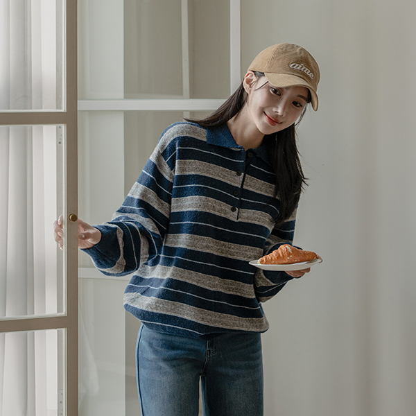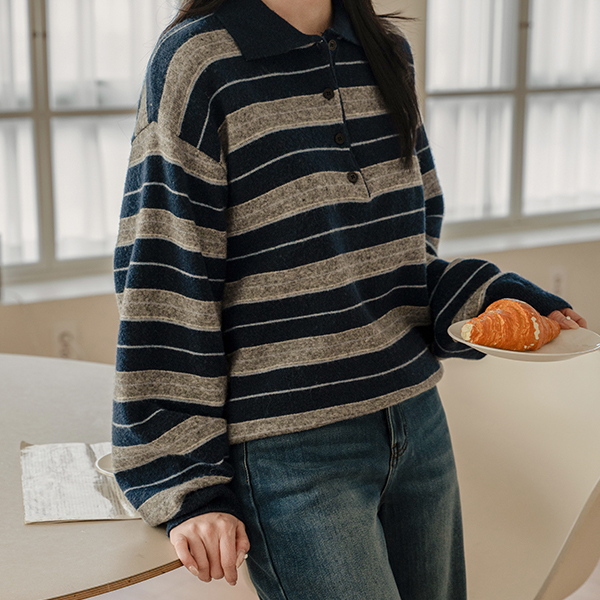 KANU WOOL STRIPE COLLAR KNIT