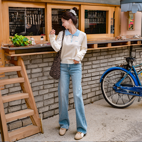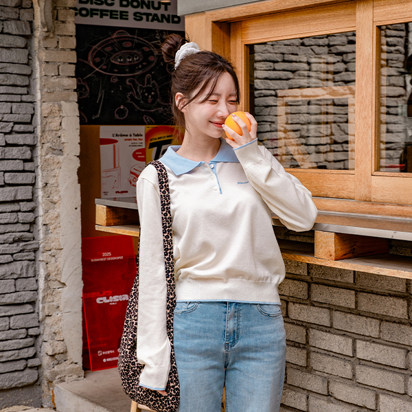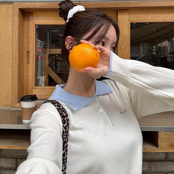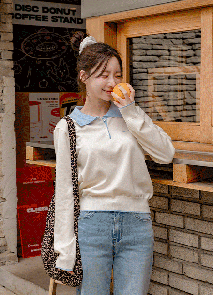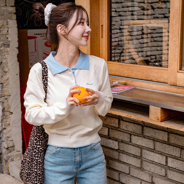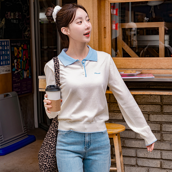 BASIC COLORING COLLAR EMBROIDERED KNIT