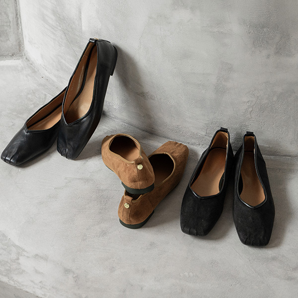 GOLD SYMBOL SHIRRING SQUARE FLAT