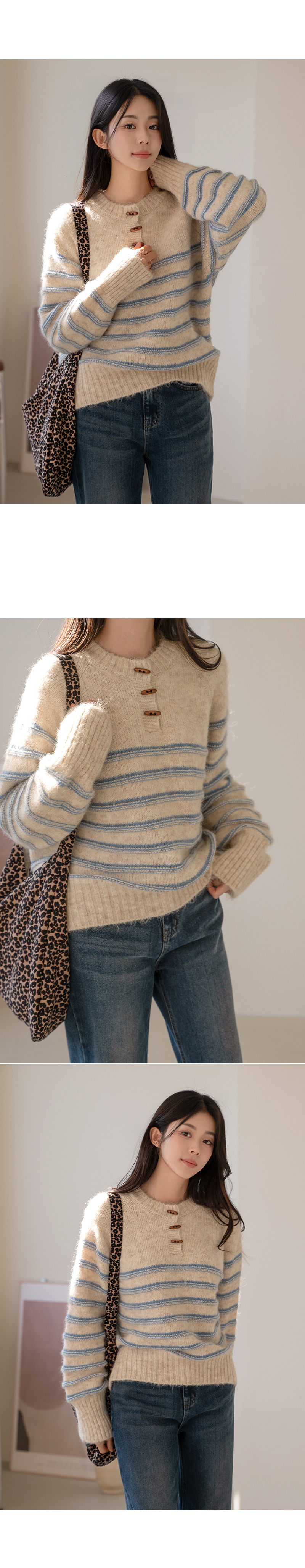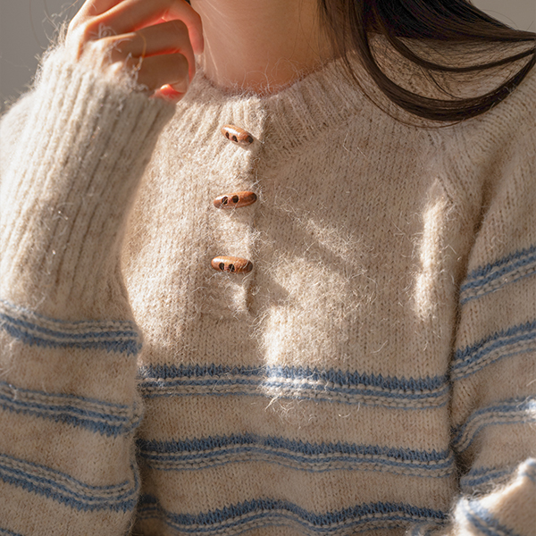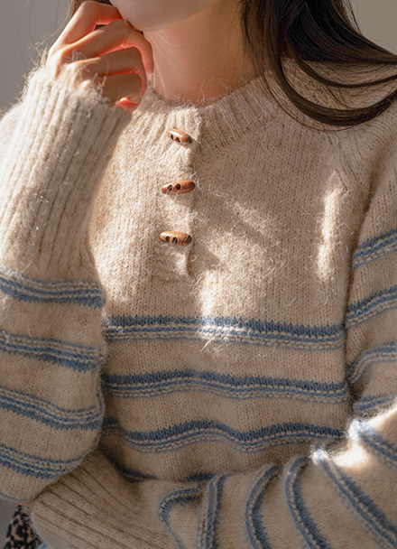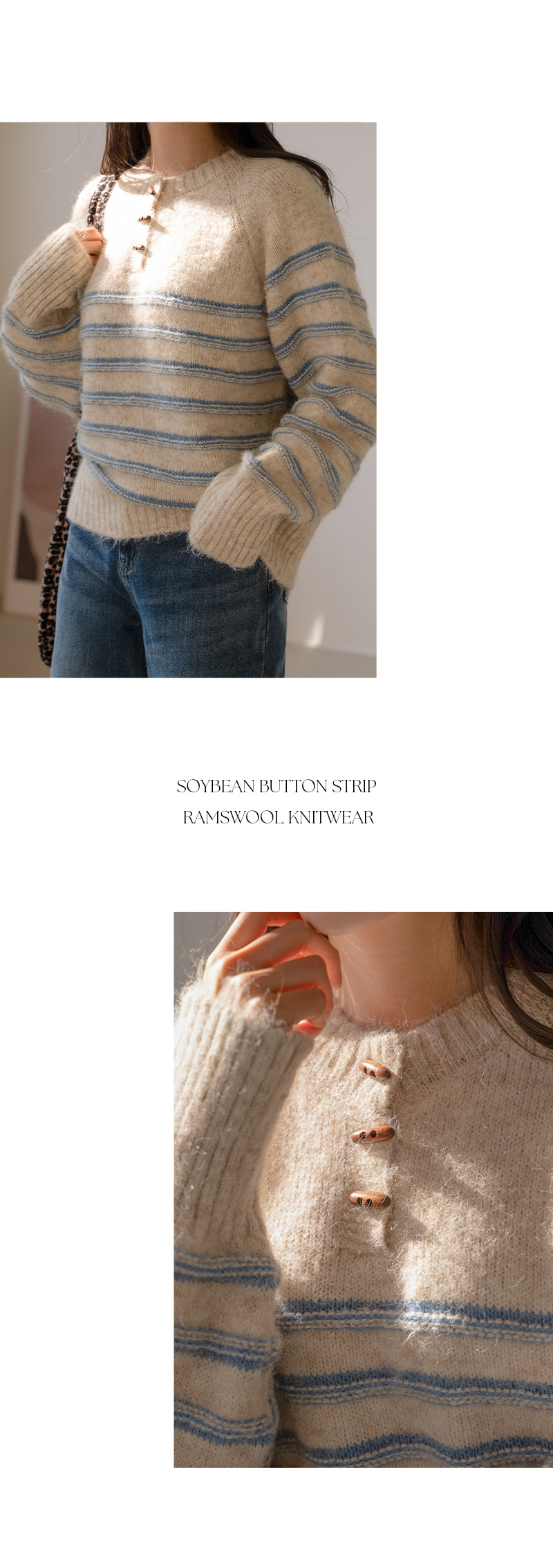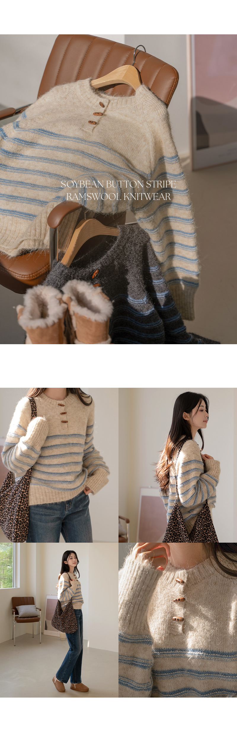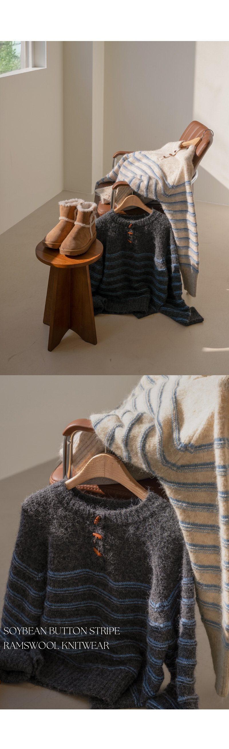 SOYBEAN BUTTON STRIPE RAMSWOOL KNITWEAR