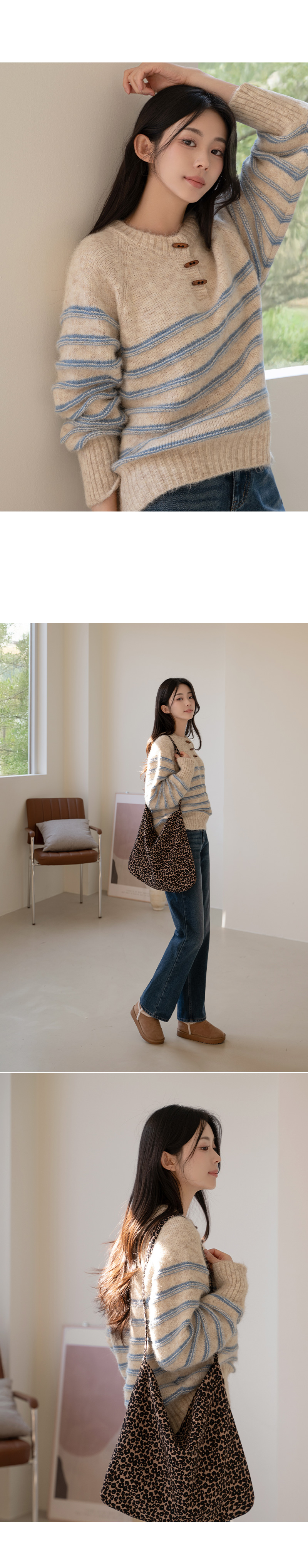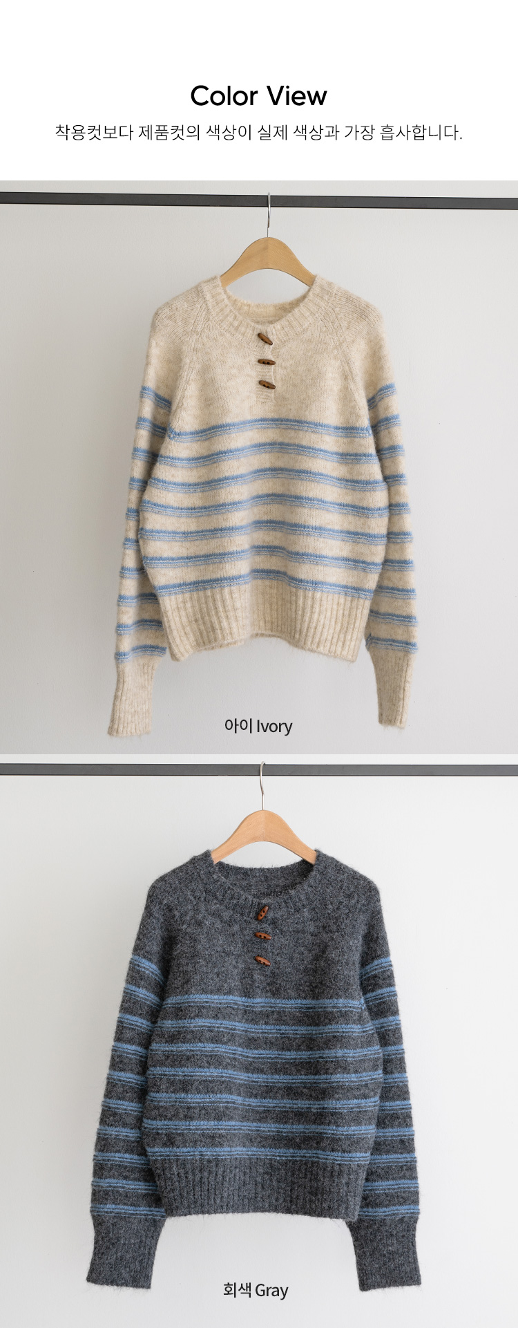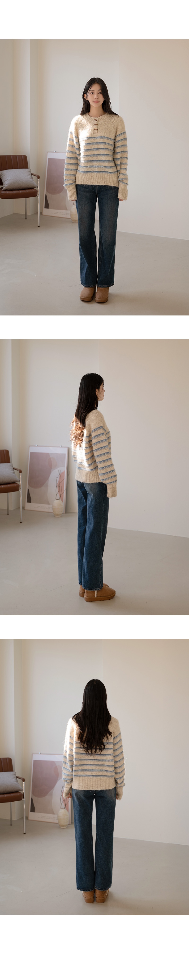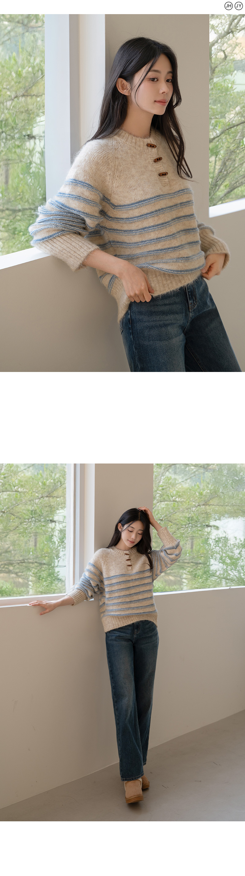 SOYBEAN BUTTON STRIPE RAMSWOOL KNITWEAR