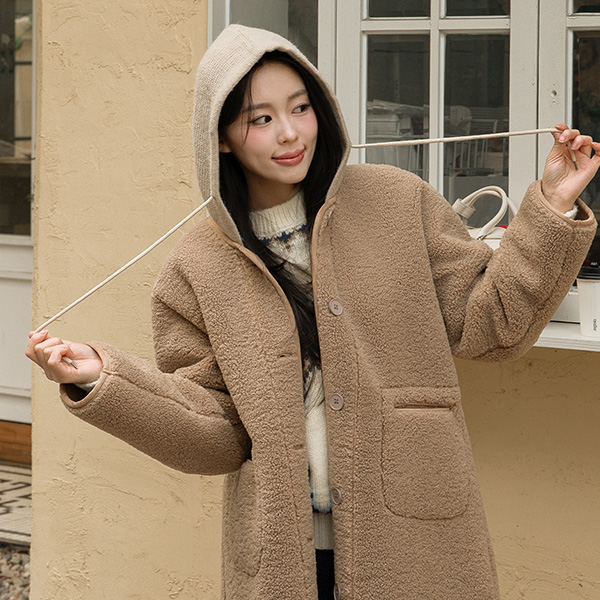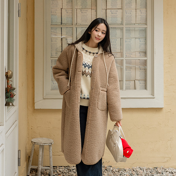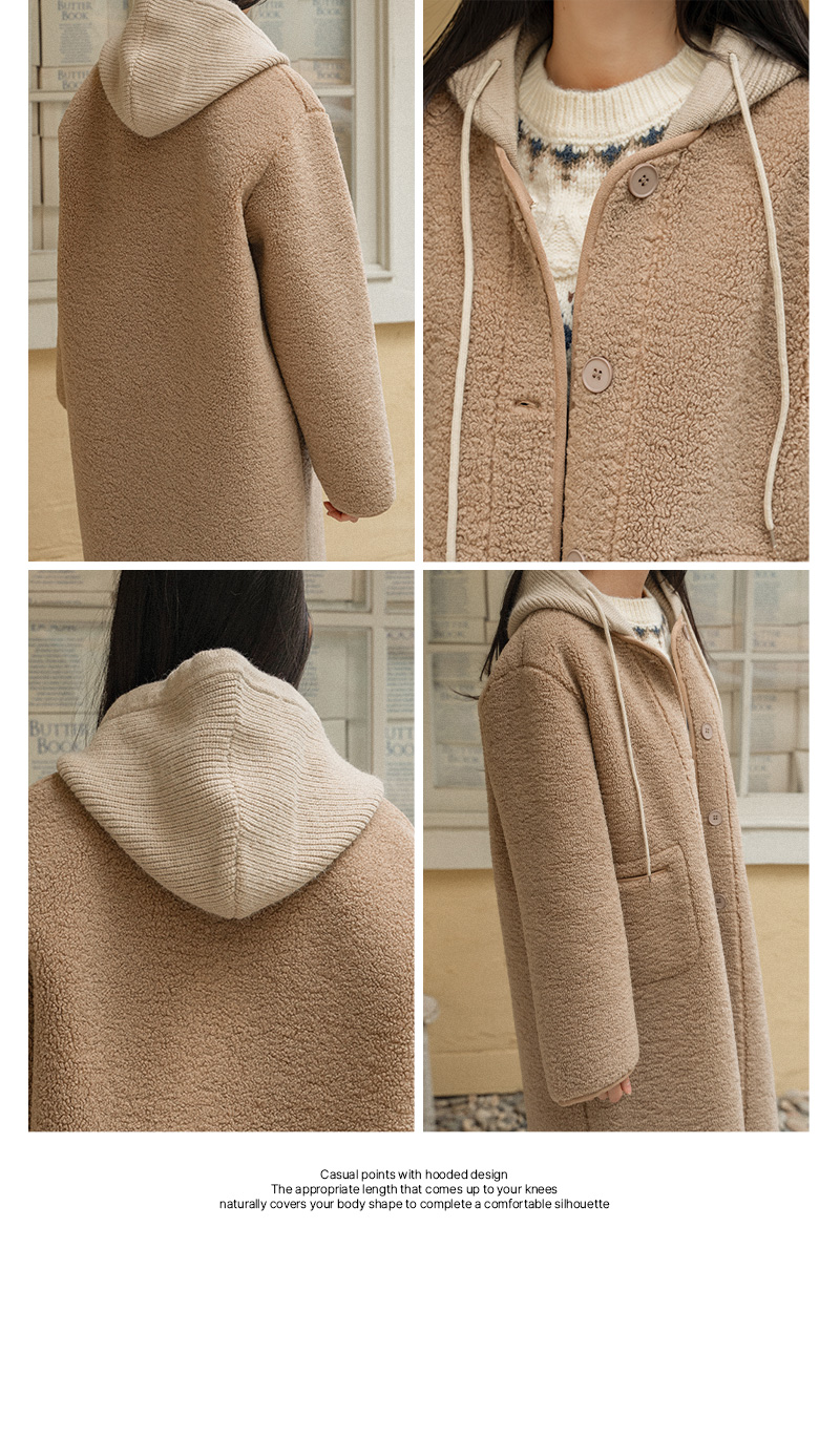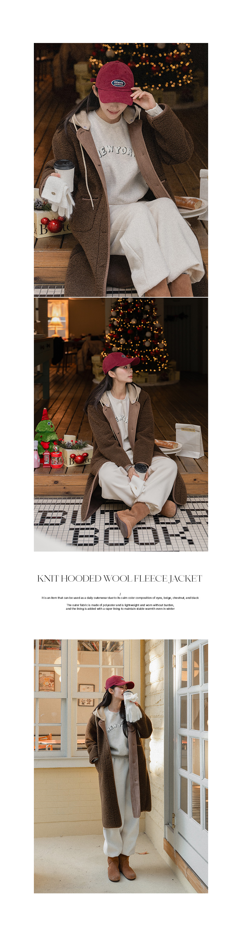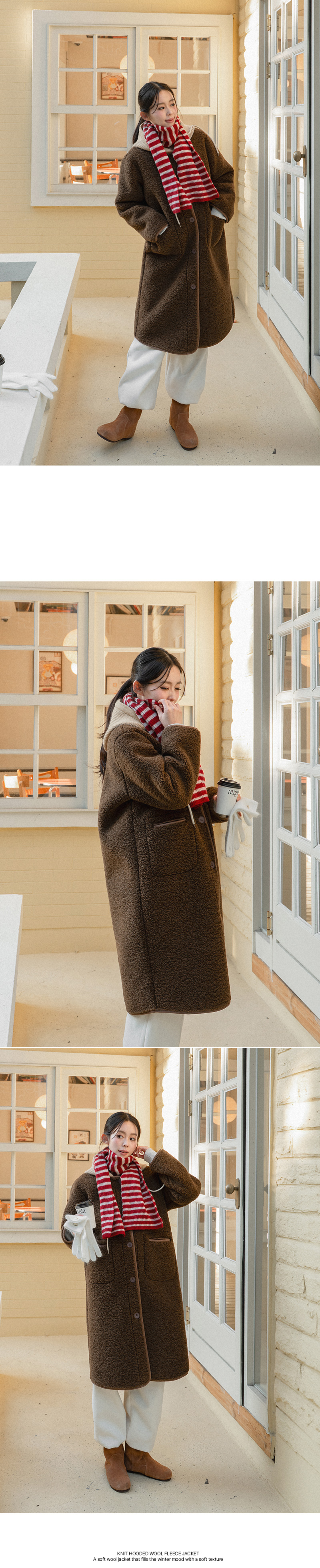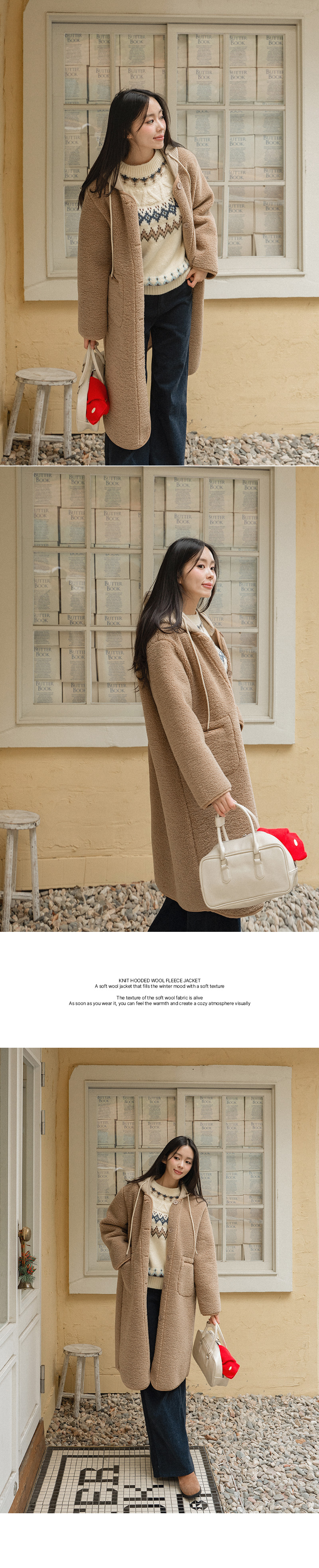 KNIT HOODED WOOL FLEECE JACKET