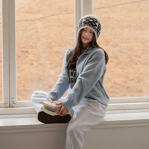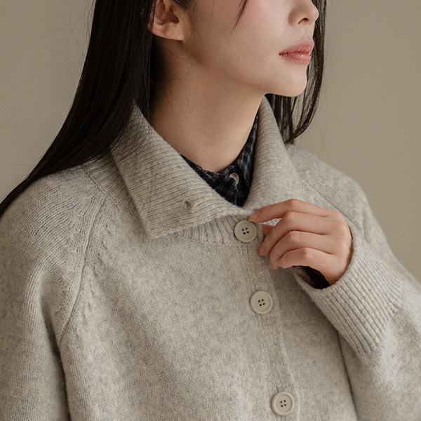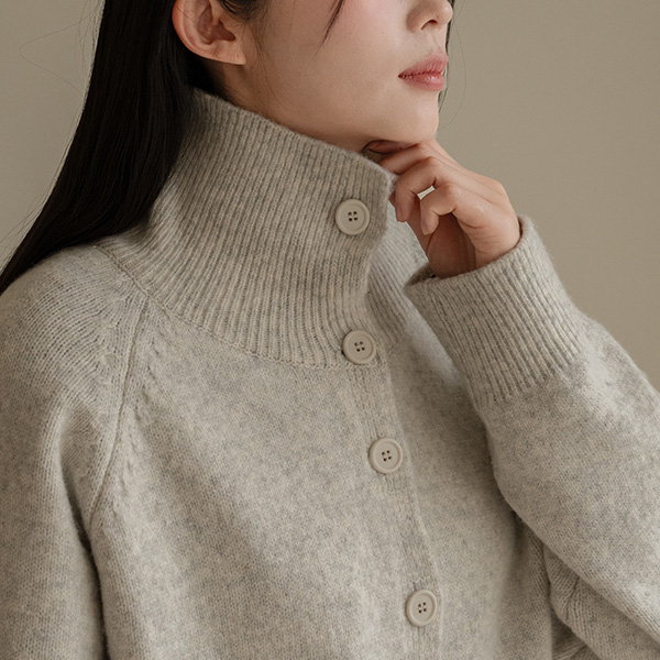 BUTTON HIGH-NECK WOOL KNIT CARDIGAN