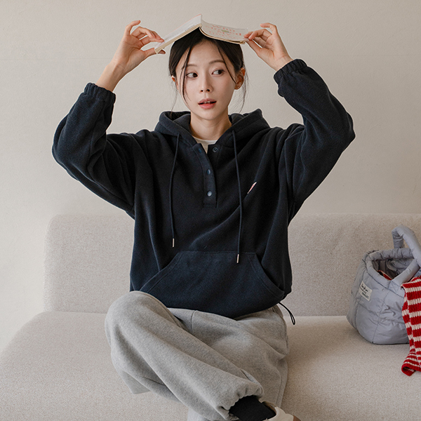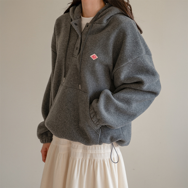SNAP-BUTTON FLEECE HOODIE ANORAK