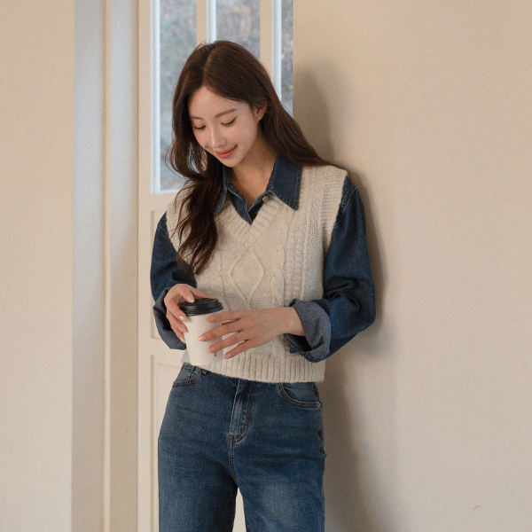 FISHER WOOL V-NECK KNIT VEST
