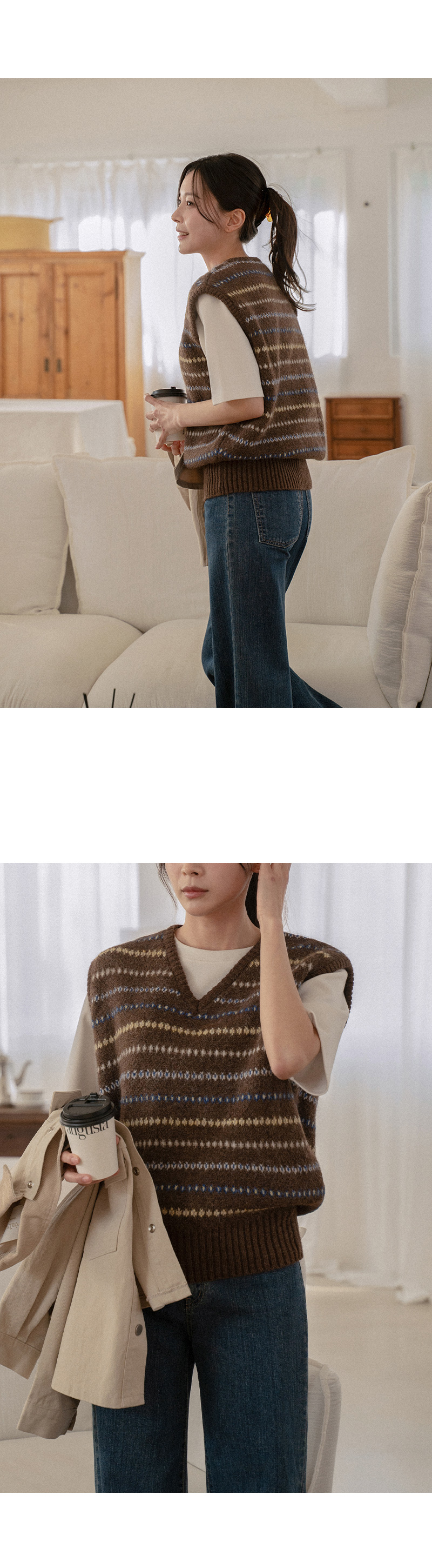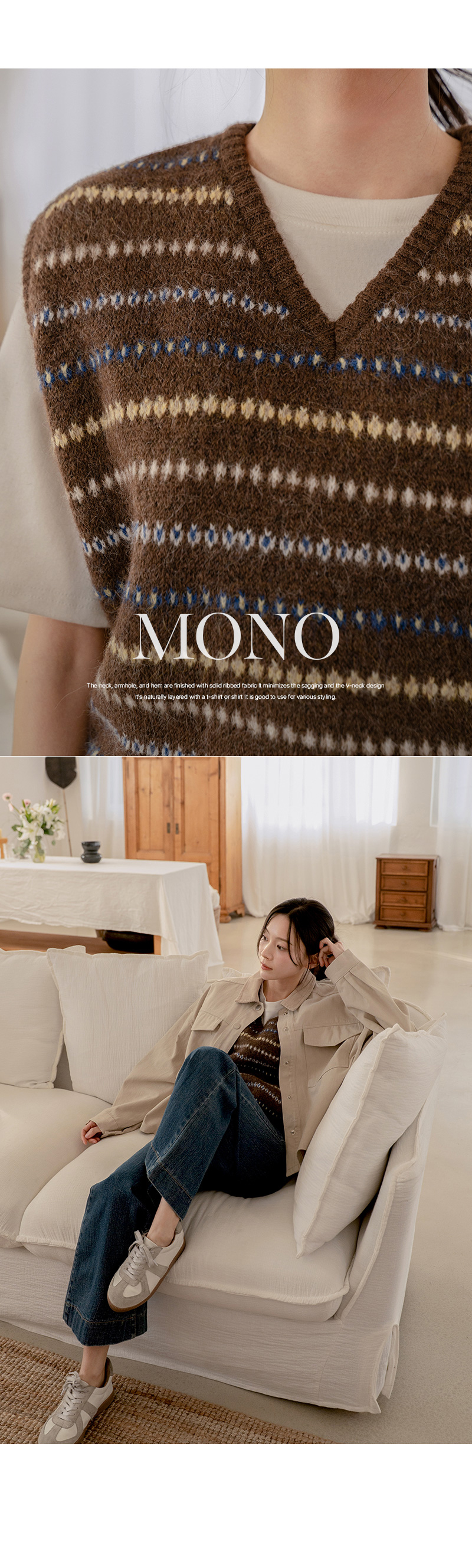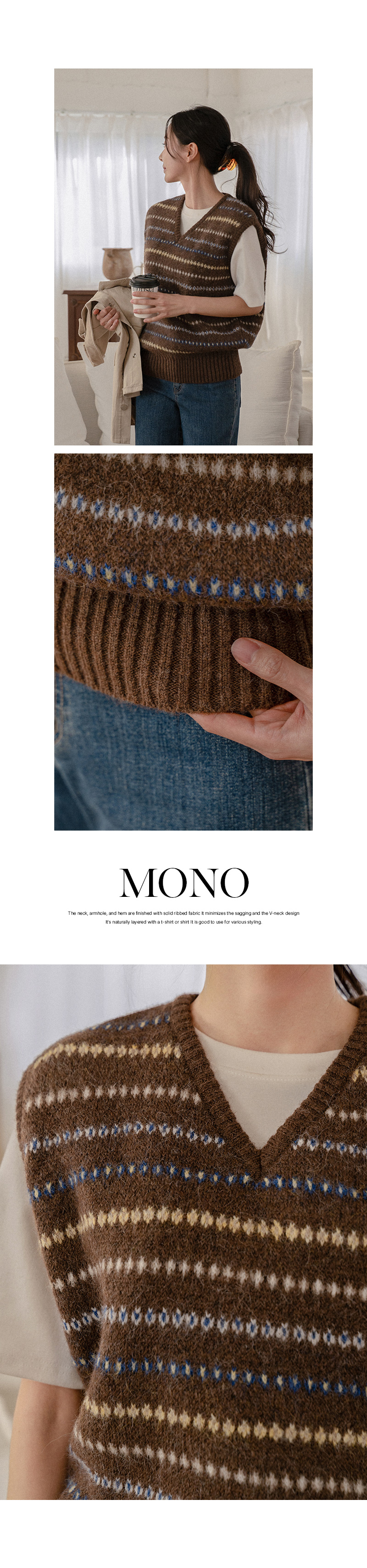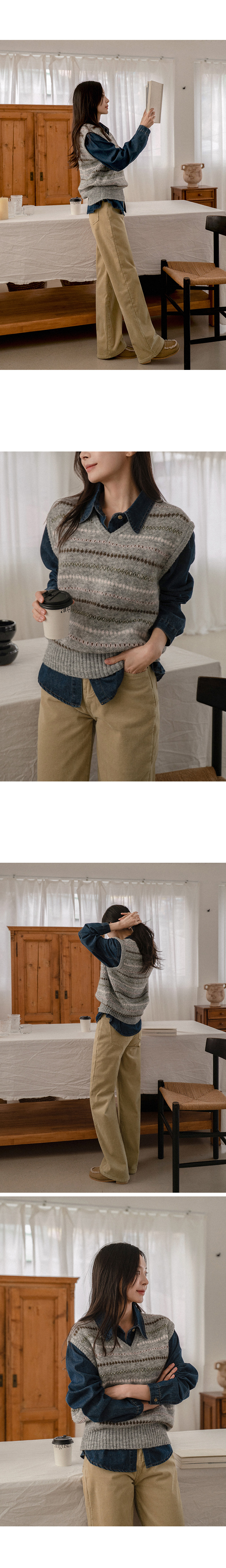 MONO JACQUARD WOOL KNIT VEST