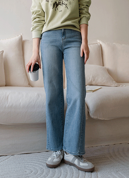 DIAGONAL DART WIDE DENIM PANTS