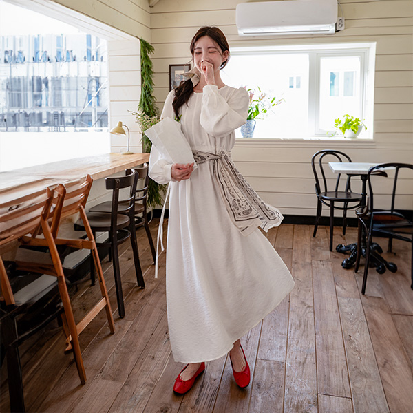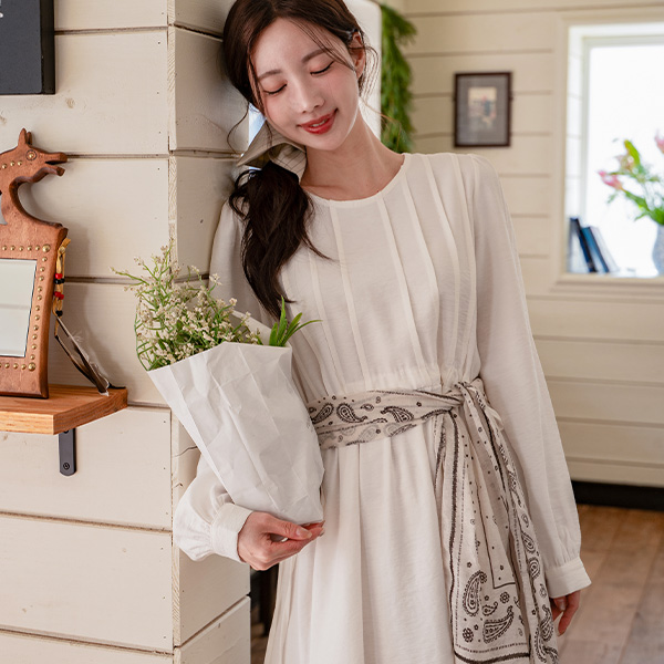 PINTUCK STRING LONG ONE-PIECE DRESS