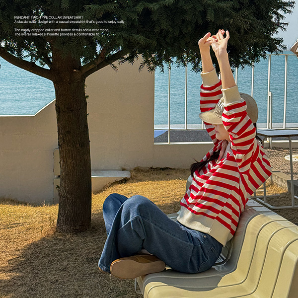 PENDANT TWO-TYPE COLLAR SWEATSHIRT